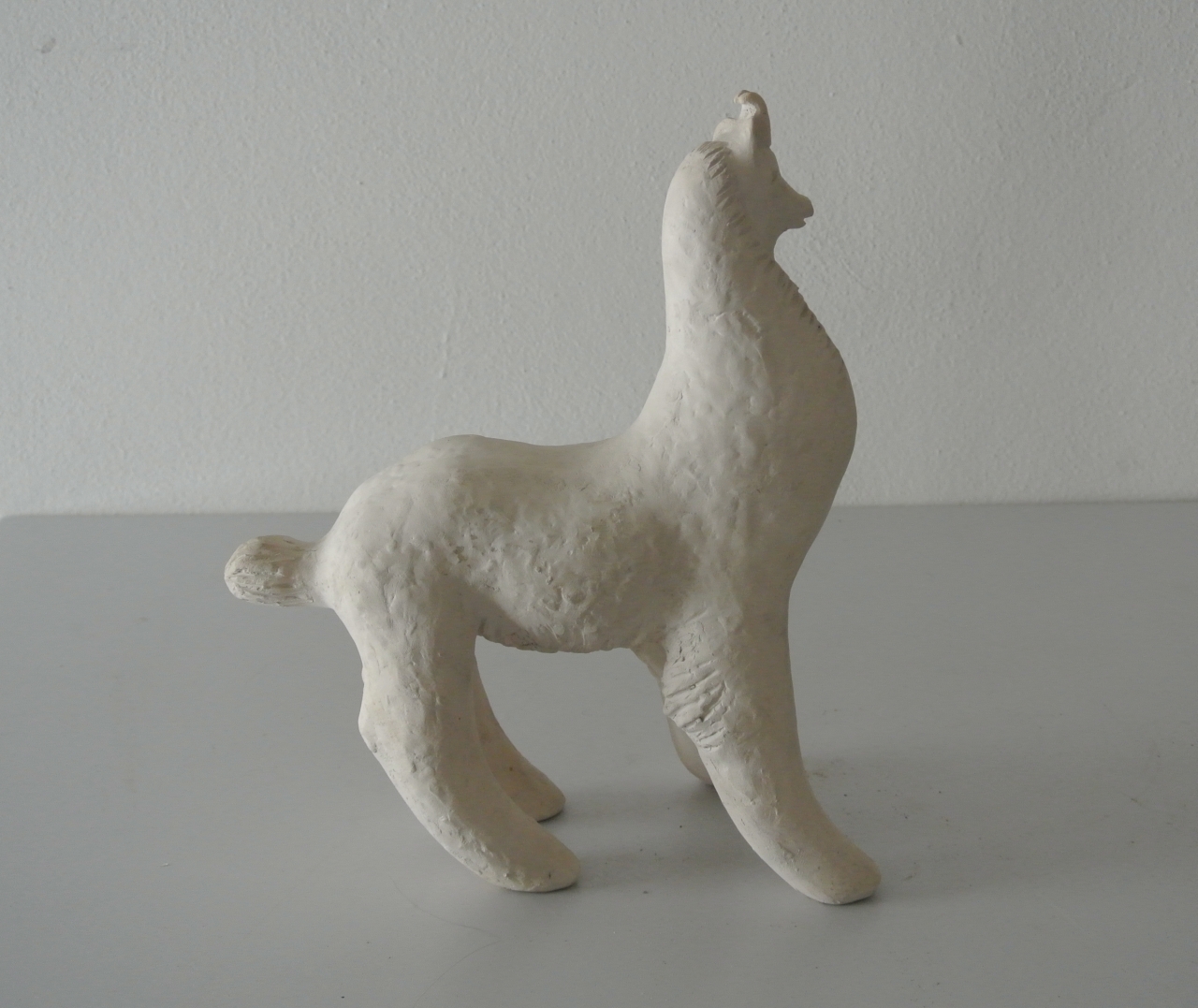 Scultura in terraglia tenera priva di rivestimento, raffigurante un camoscio