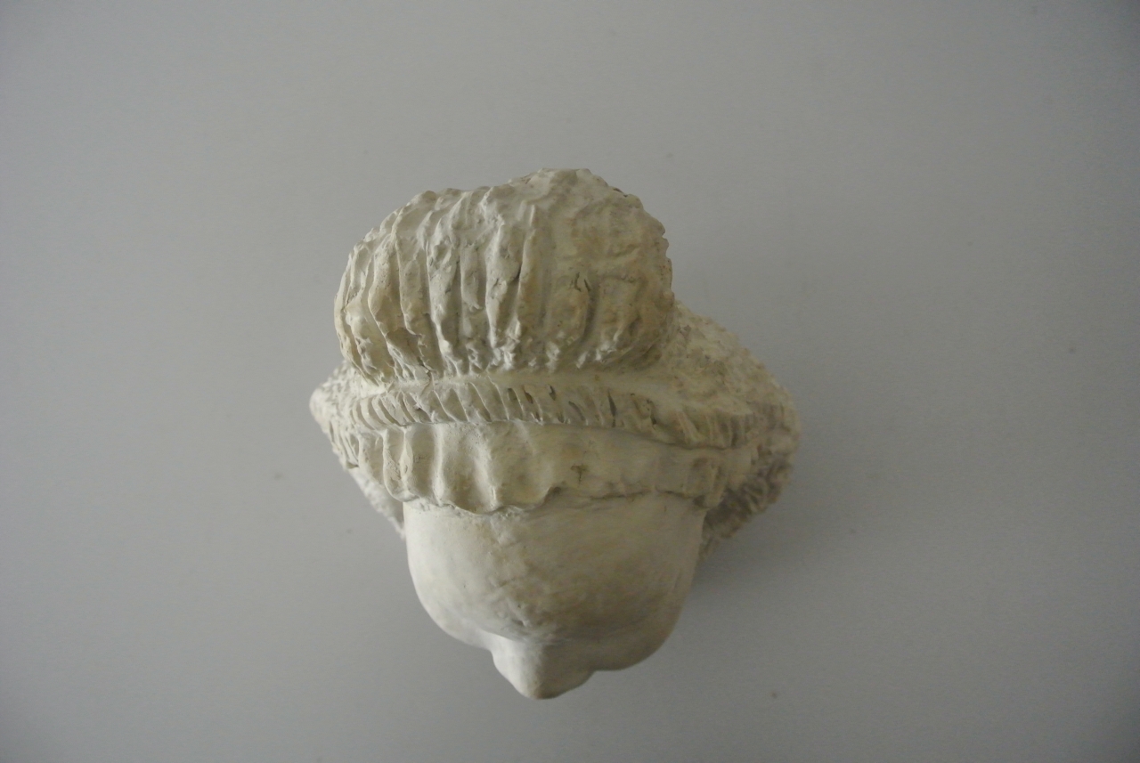 Scultura in terraglia tenera raffigurante un volto femminile sorridente dai lineamenti vagamente africani