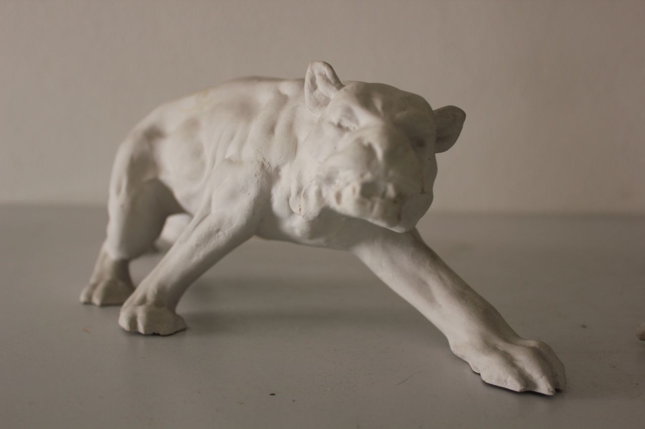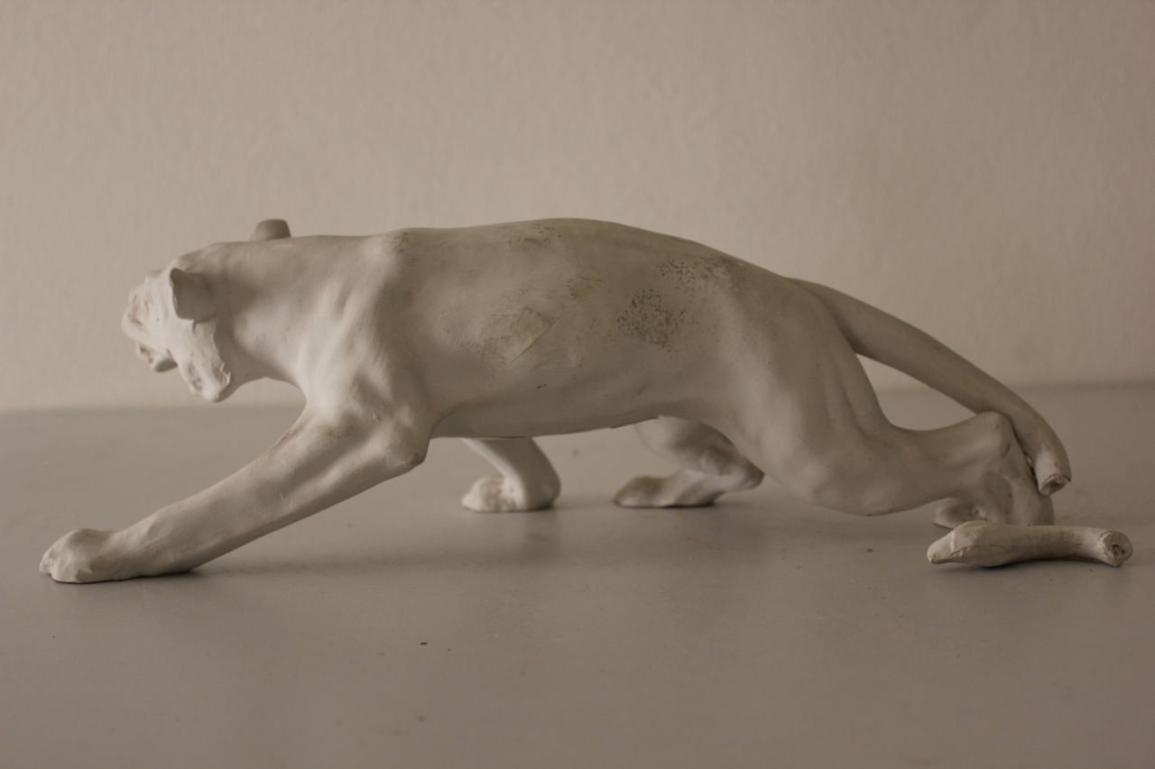 Scultura in terraglia tenera priva di rivestimento raffigurante una pantera in atteggiamento guardingo