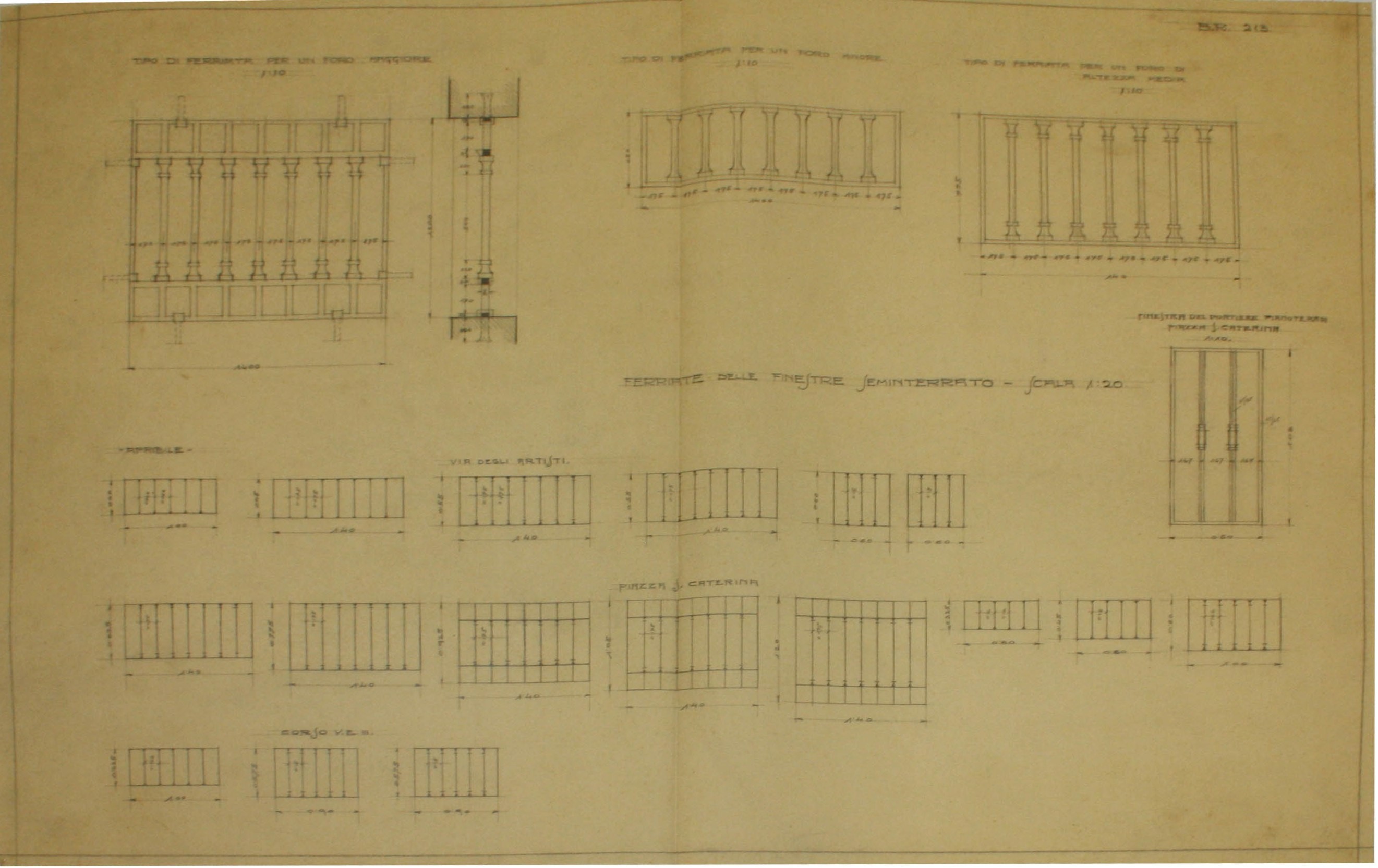 Studio di inferriate del pianterreno su Via degli artisti, Piazza S. Caterina e Corso Vittorio Emanuele III