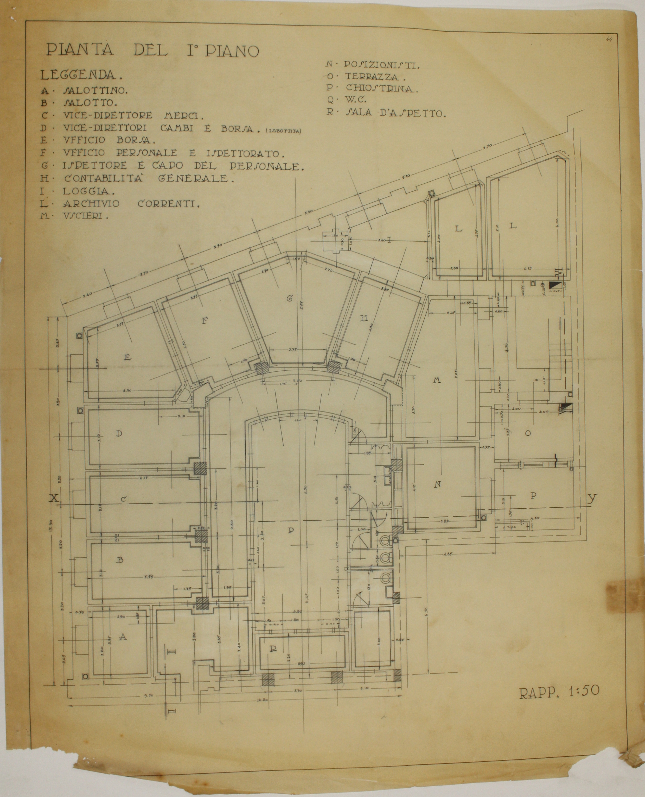 Stralcio di pianta del primo piano tra Via degli artisti e Piazza S. Caterina in scala 1:50