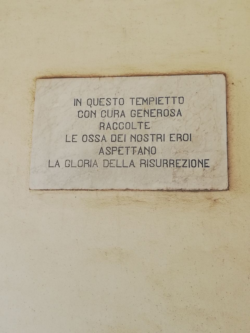 - ISCRIZIONI al centro - IN QUESTO TEMPIETTO/ CON CURA GENEROSA/ RACCOLTE/ LE OSSA DEI NOSTRI EROI/ ASPETTANO/ LA GLORIA DELLA RISURREZIONE - maiuscolo -