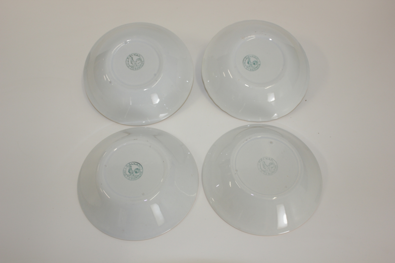 - STEMMI sotto alla base di ogni piatto - di fabbrica - Marchio - Ceramiche Galvani - 4 - gallo andante entro corona circolare con la scritta GALVANI/ IND. CERAMICHE, timbrato