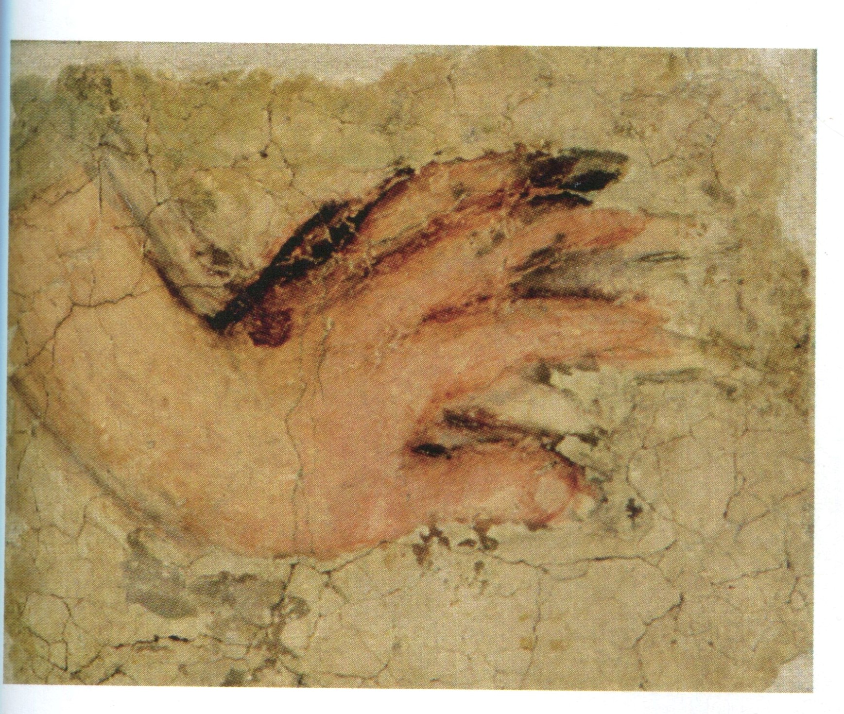Il frammento di affresco in oggetto è un lacerto raffigurante una mano, aperta, e dipinta in una posa articolata