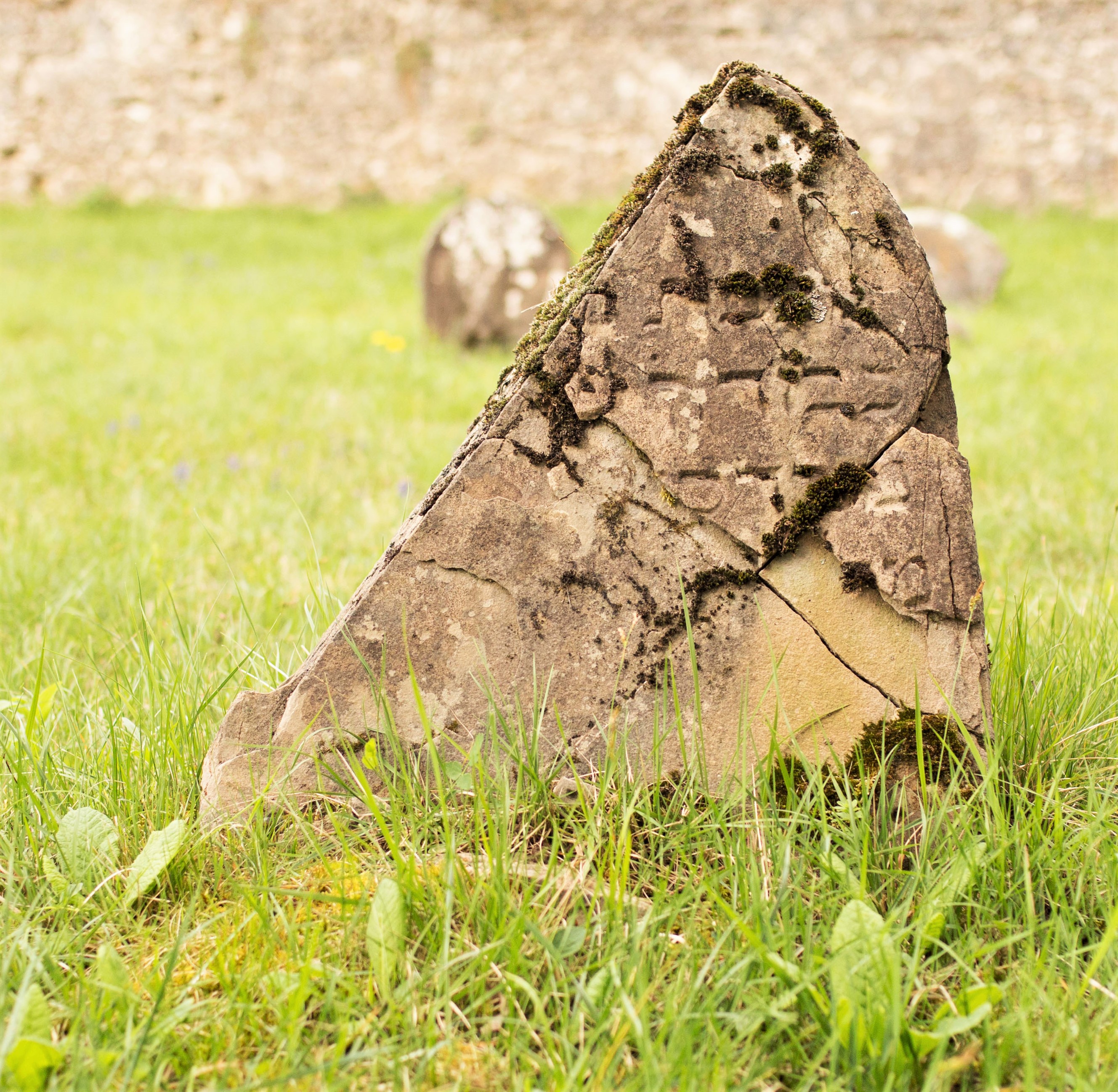 Lapide centinata eretta. Lo specchio epigrafico è incorniciato da una linea incisa lungo il perimetro