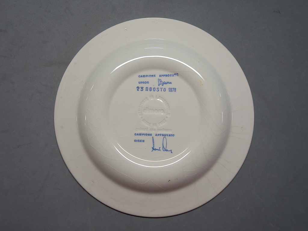 - STEMMI sotto alla base - di fabbrica - Marchio - Ceramiche Galvani - 1 - corona circolare con scritta RESISTENTE IN LAVASTOVIGLIE/ dimora / MADE IN ITALY/ sotto scritta galvani spa pordenone; impresso