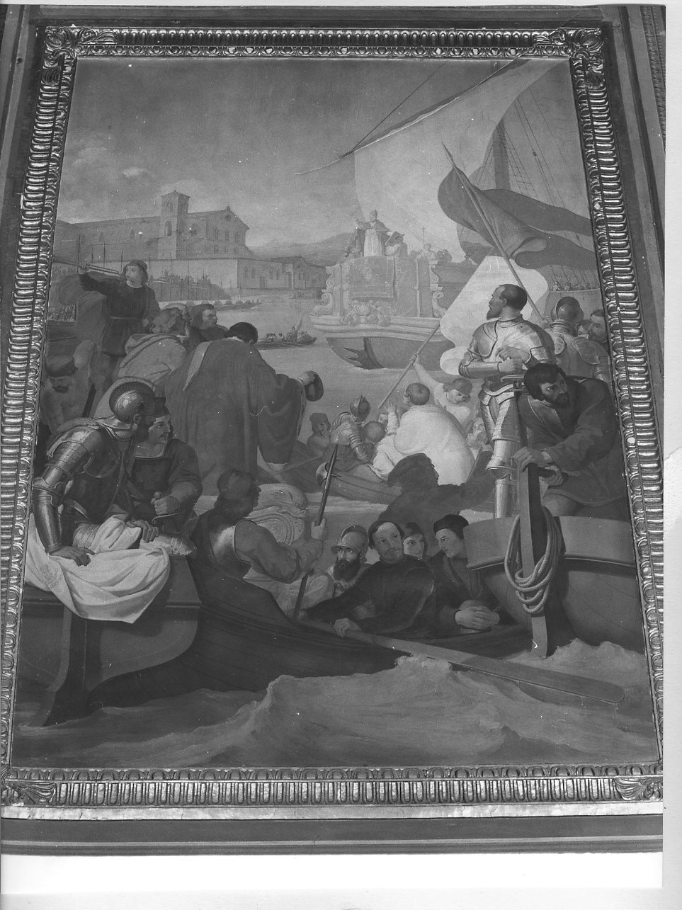 - ISCRIZIONI In una lapide posta al margine inferiore del dipinto - SISTUS IV PONT. MAX SAVONENSIS/ TURCAS PROGREDIENTES OPPUGNATURUS/ VENETORUM ET FERDINANDI I REGIS NEAP. CLASSES/ SUAE ADJUNGIT EISDEMQUE BENEDICIT/ AN. A CHR. NATO MCCCCLXXII -