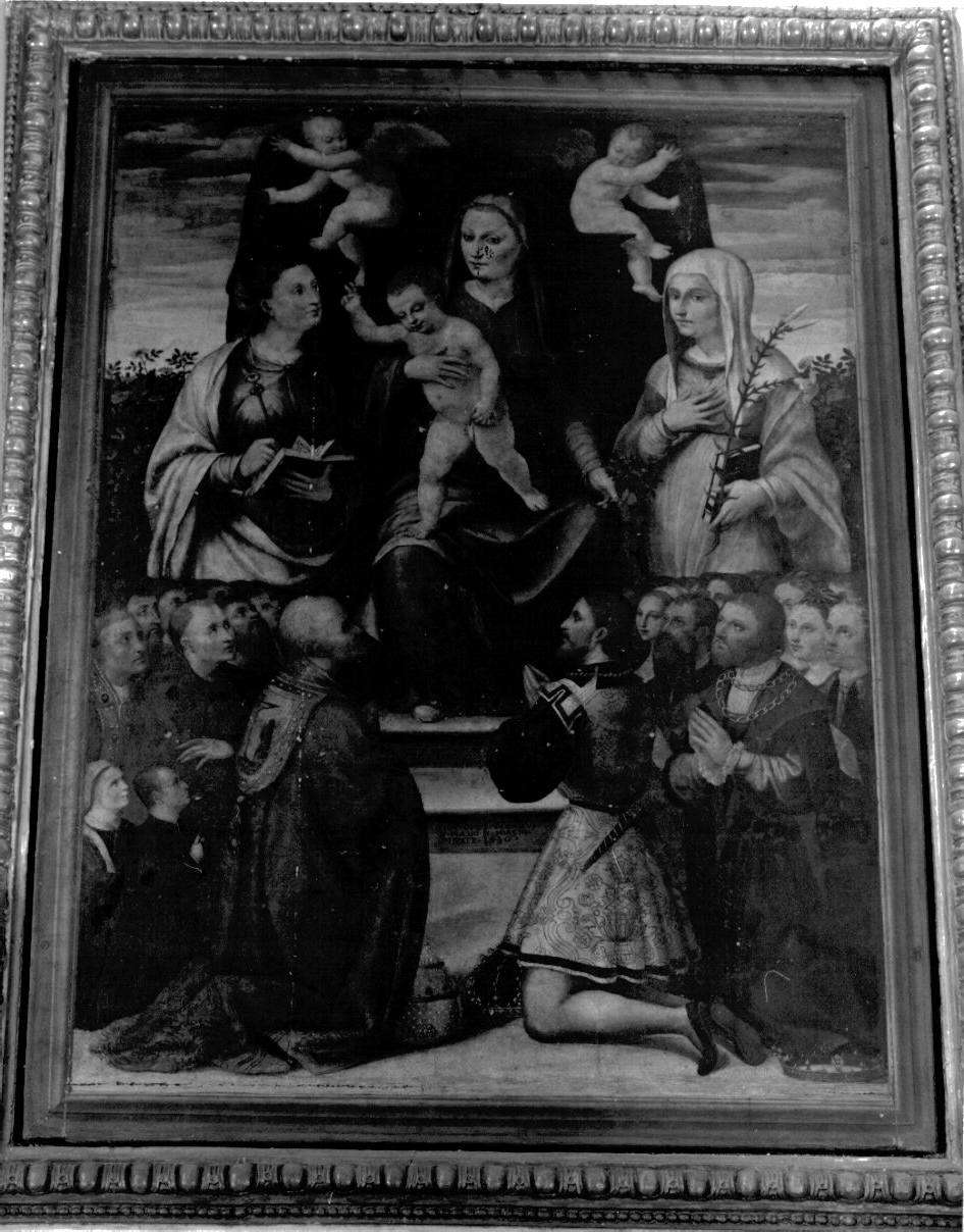 Personaggi: Madonna; Santa Lucia; Santa Caterina da Siena; Bartolomeo Delfino. Architetture: gradini. Ecclesiastici. Figure: angeli; devoti. Attributi: (Santa Lucia) occhi; (Santa Caterina da Siena) velo