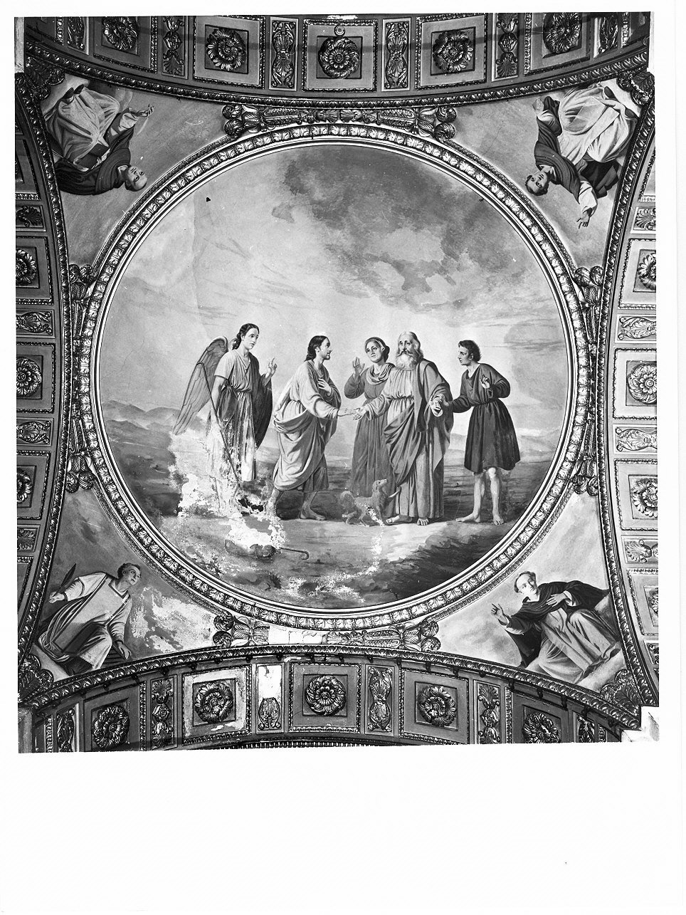Personaggi: Tobia; Tobi; Sara(?). Attributi: (angelo) verga. Figure: angelo; giovinetto. Animali: cane. Paesaggi: rocce; colline; nuvole