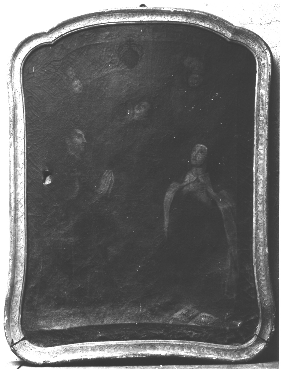 - NOTIZIE STORICO CRITICHE Il tono severo, i colori molto cupi e la raffigurazione dei due santi in estasi secondo una consuetudine figurativa tipica del secolo XVII permettono di pensare ad un'opera eseguita nella seconda metà del secolo. Caratteristica del periodo è anche la cornice in legno dorato dalla linea sagomata