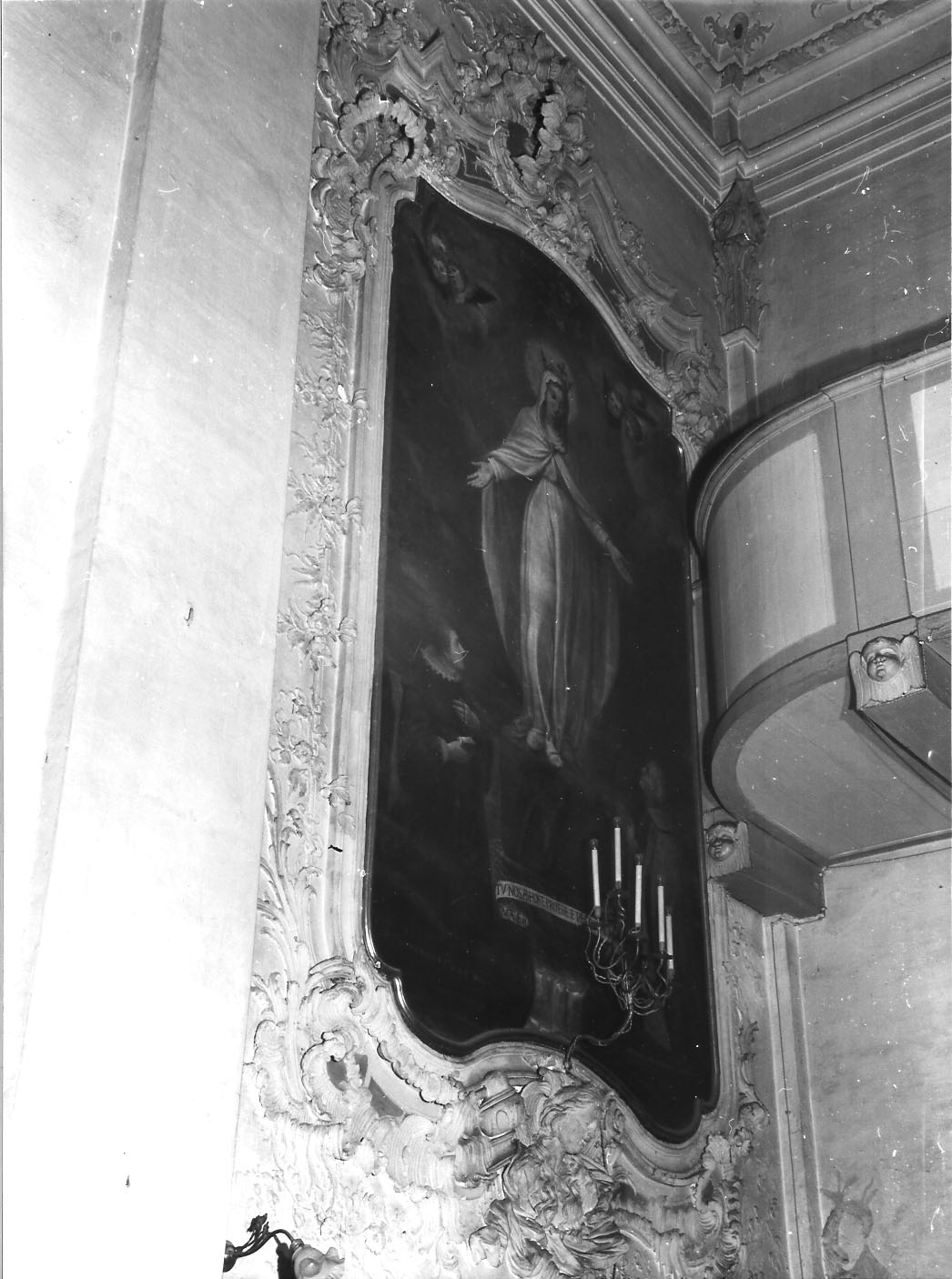 - NOTIZIE STORICO CRITICHE La cornice, in tono con le restanti decorazioni della chiesa, si sviluppa con particolari plastici più ricchi, forse per indicare il posto di rilievo spettante alla Madonna della Misericordia in uno dei più importanti oratori savonesi. Le decorazioni a stucco vennero eseguite dal Petonti tra il 1775 e il 1789, per abbellire le pareti dell'oratorio distrutte dall'incendio del 1755