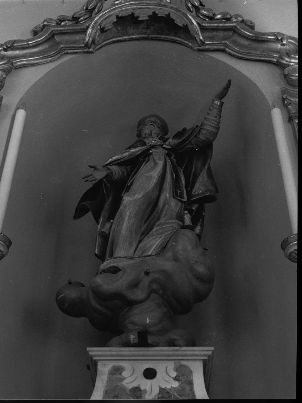 - NOTIZIE STORICO CRITICHE Gli elementi stilistici (vedi il movimento a spirale delle nuvole, che si ripercuote nelle pieghe larghe ed esseziali del piviale, e la scavata fisionomia del volto, indagatriche del carattere, ottenuta con nervosi ed incisivi colpi di sgorbia) fanno pensare ad uno scultore sensibile a modelli maraglianeschi