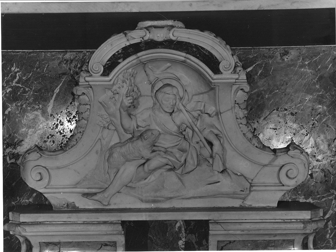 - NOTIZIE STORICO CRITICHE Dopo il bombardamento il paliotto fu ricostituito assemblando a pezzi di metà '600, il bassorilievo, parti recenti, i pilastrini. Il bassorilievo per la sua forma, lievemente concava e centinata potrebbe essere stato una cimasa e in particolare quella dell'altare di San Giovanni Battista, il quinto della navata destra dell'antica chiesa. Per motivi stilistici sembra databile alla metà del '600