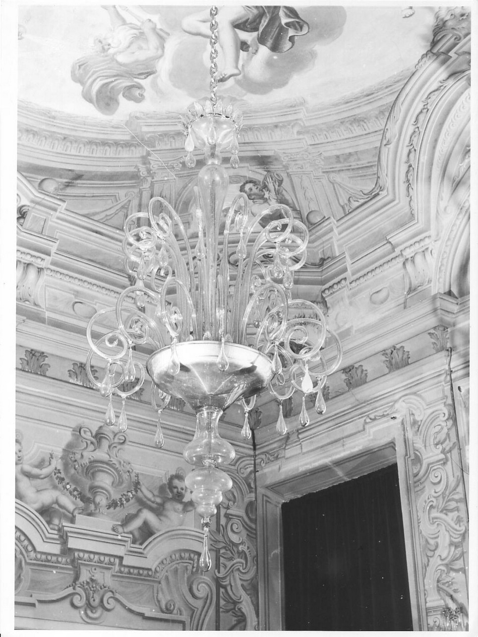 - NOTIZIE STORICO CRITICHE Il lampadario rispecchia le nuove soluzioni strutturali realizzate in rapporto alla tecnica dell'illuminazione elettrica, introdotta sullo scorcio del XIX secolo: tutti gli elementi del lampadario vitreo diventano cavi, compresi i bracci - per il passaggio dei fili - anzicchè a corpo pieno come in passato
