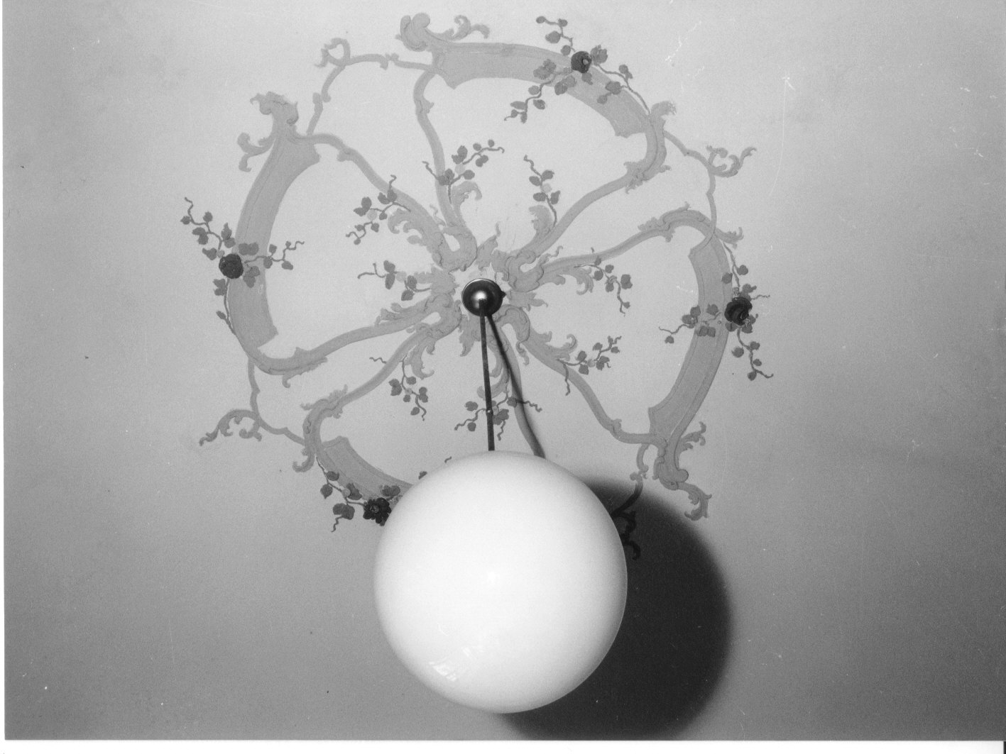 - NOTIZIE STORICO CRITICHE Questa decorazione si svolge sia lungo i riquadri del soffitto, sia nella zona centrale con l'anello per il lampadario, sia nel riquadro superiore della finestra. Databile genericamente alla prima metà del secolo XIX per la ripresa in forme irrigidite di motivi settecenteschi irrigiditi