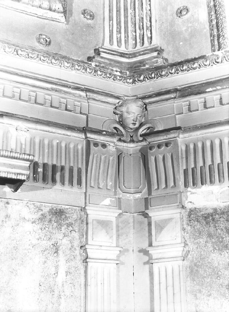 - NOTIZIE STORICO CRITICHE GLI STUCCHI, CHE RIPRENDONO NEI PARTICOLARI DECORATIVI E NELLE TESTE DI CHERUBINI GLI STUCCHI CINQUECENTESCHI DELLA VOLTA (CFR. SCHEDA N. 144), SONO DATABILI -PER IL TIPO DI ESECUZIONE ED I CARATTERI STILISTICI- ALLA SECONDA META' DELL'OTTOCENTO (PROBABILMENTE ALLA FINE DEL SECOLO), EPOCA IN CUI SI EBBERO NOTEVOLI CAMBIAMENTI NELLA CAPPELLA, CON L'EREZIONE DEL NUOVO ALTARE E IL RIFACIMENTO DELLA BALAUSTRA (CFR. SCHEDE NN. 127 E 135)