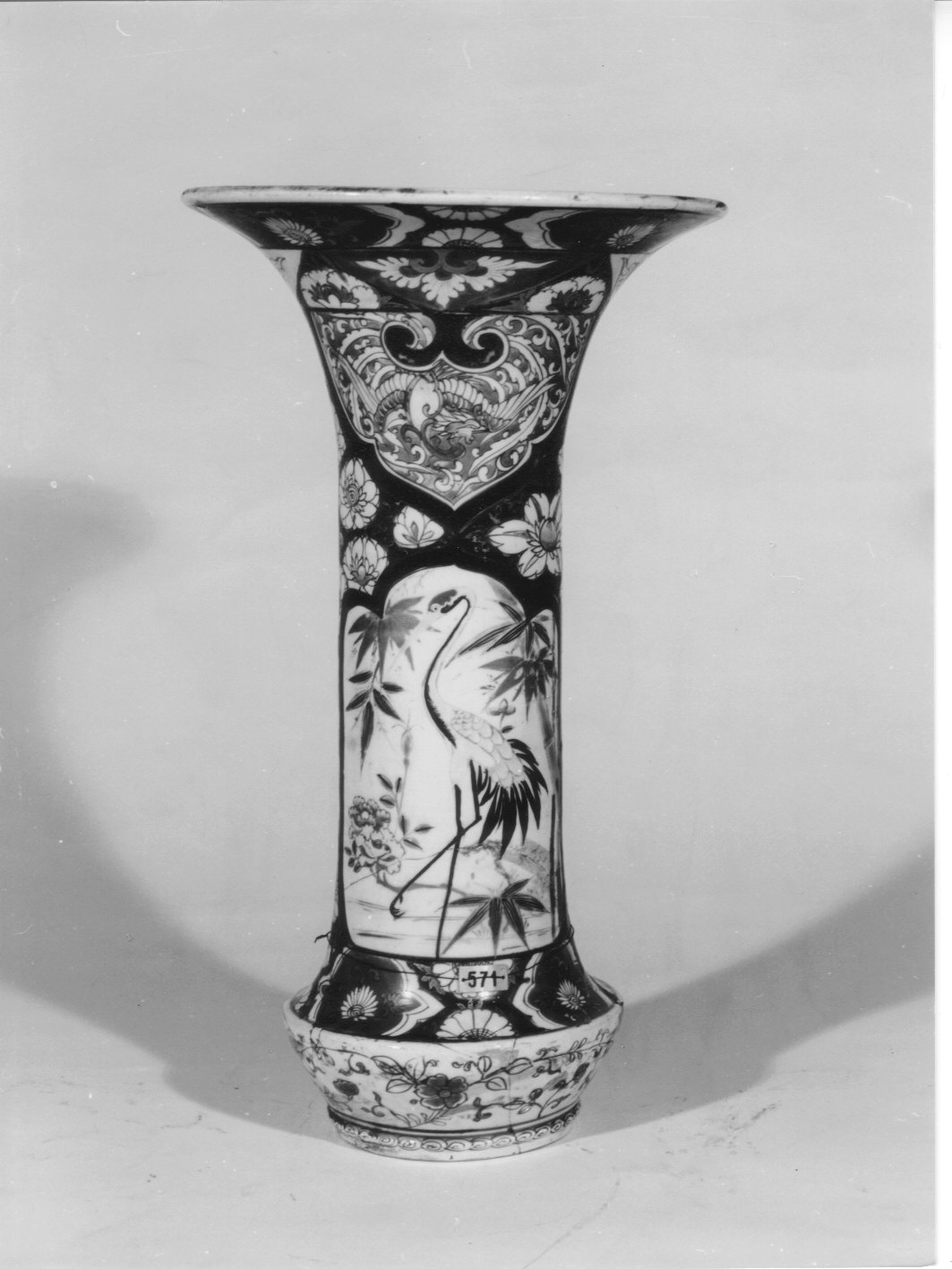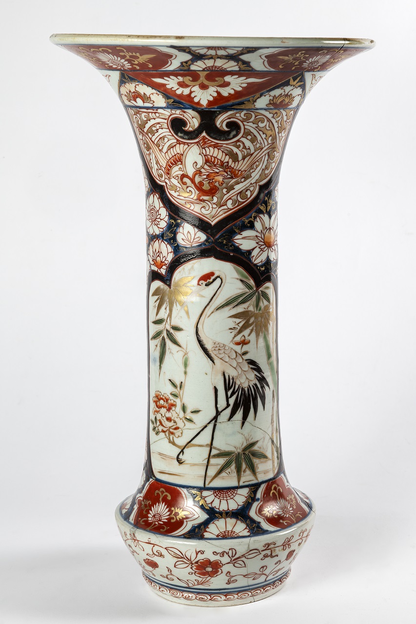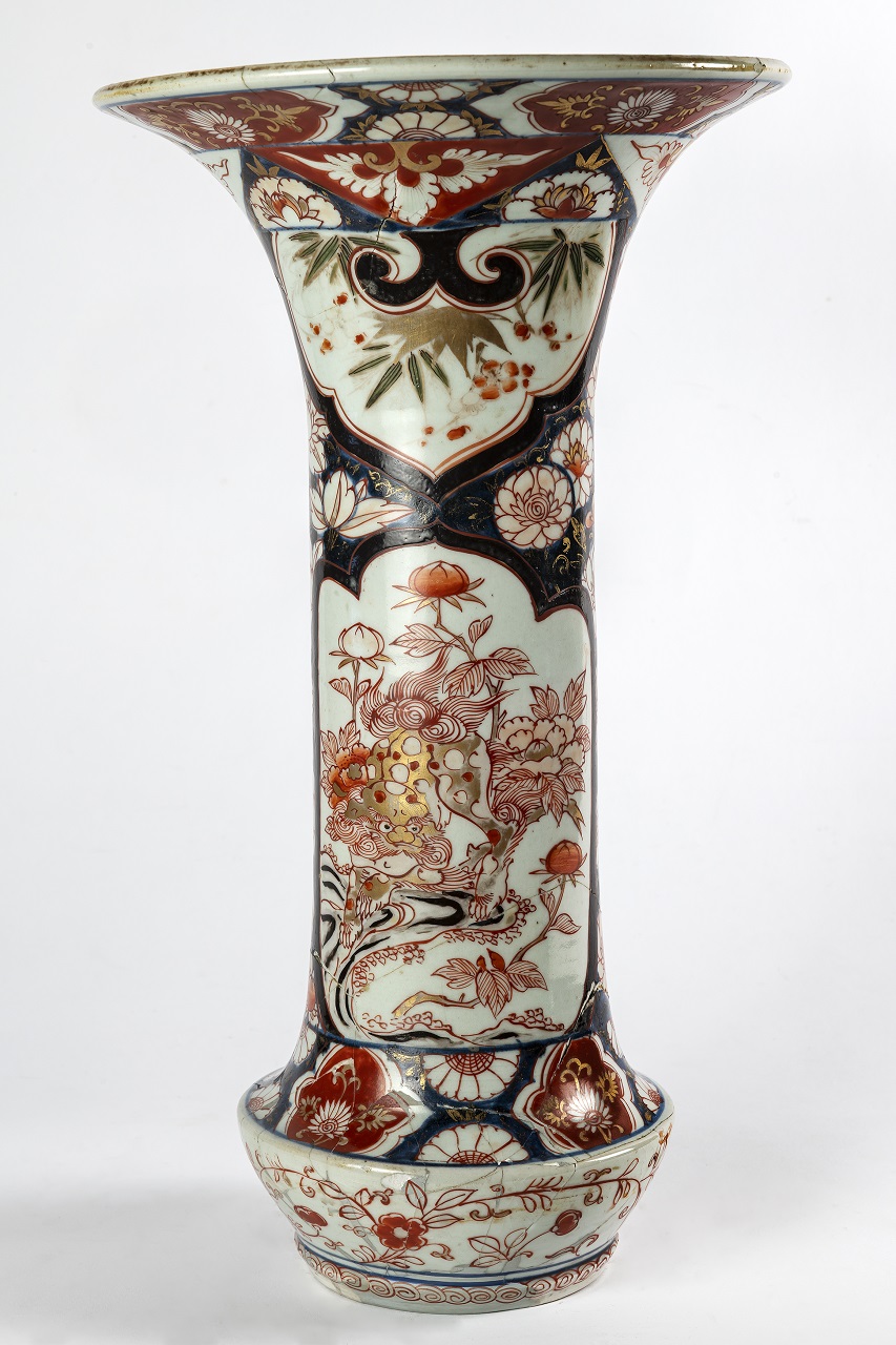 - NOTIZIE STORICO CRITICHE I vasi "cornettes" presentano un decoro molto simile a quello di una coppia di potiches conservati nel Palazzo. L'altezza, uguale a quella al collo delle potiches, farebbe pensare ad una "garniture" nel qual caso mancherebbe una potiche, forse andata perduta nel corso degli anni. La tavolozza Imari presenta molte irregolarità ed anche il corpo si rivela poco accurato rispetto ad altri esemplari coevi
