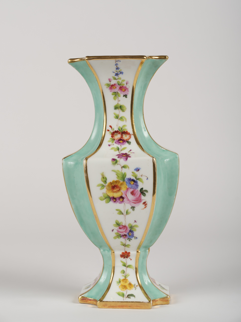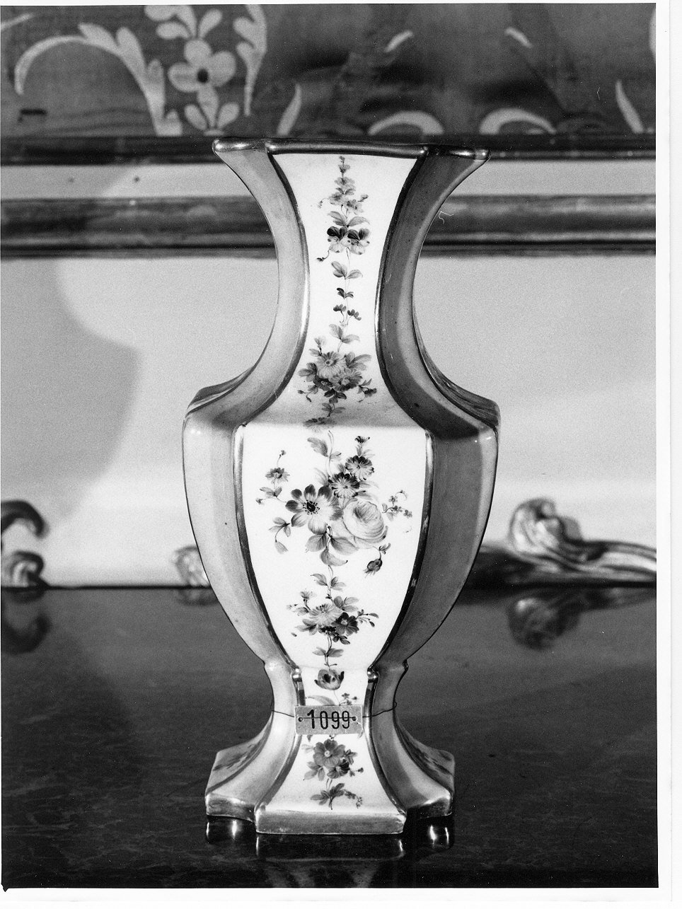 - NOTIZIE STORICO CRITICHE I vasi, dalla decorazione elegante e leggera, sono databili alla seconda metà del XIX secolo. Caterina Olcese nella sua revisione del 1985 scrive: "la coppia è databile a partire dalla metà del XIX secolo"