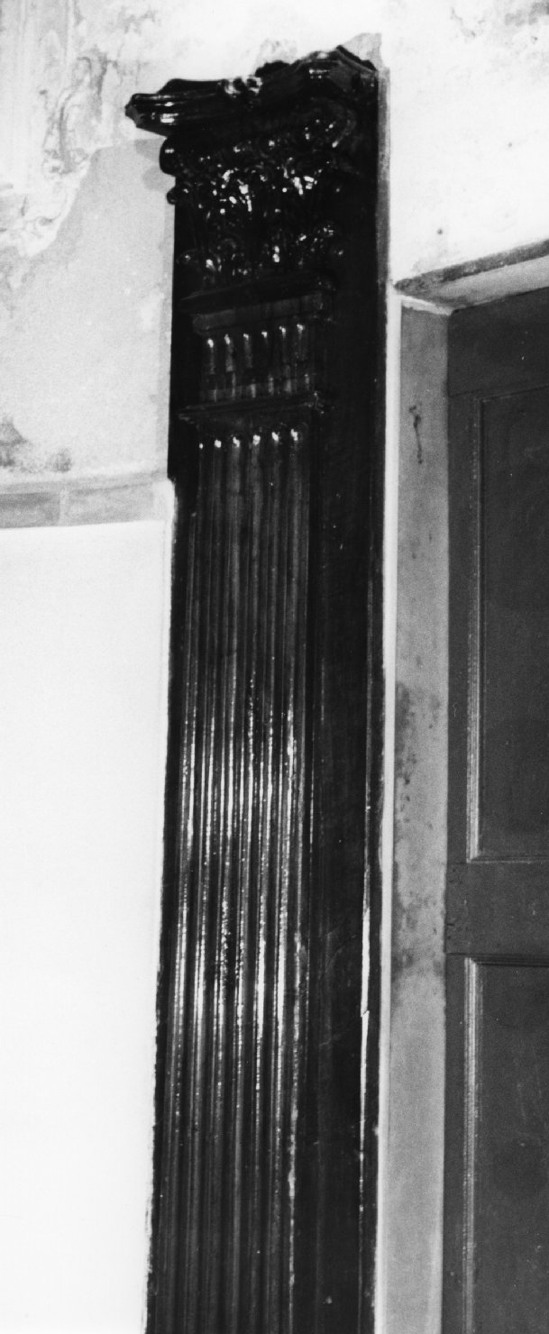La lesena e' scanalata, rastremata verso l'alto e termina in un capitello composito