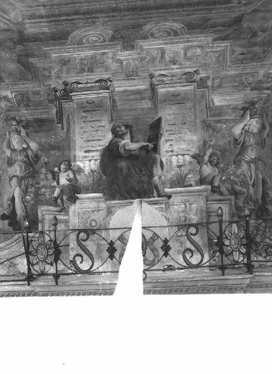 Il profeta Ezechiele, abbigliato con esotici panni, sul bordo della nicchia definita da finti mensoloni; sul basamento della nicchia putti e vasi di fiori