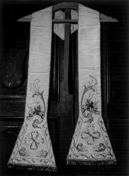 STOLA.GROS DE TOURS BIANCO/ LAMINATO ORO/ RICAMO IN FILO D'ORO RIPORTATO/ RICAMO IN FILO DI SETA POLICROMA
