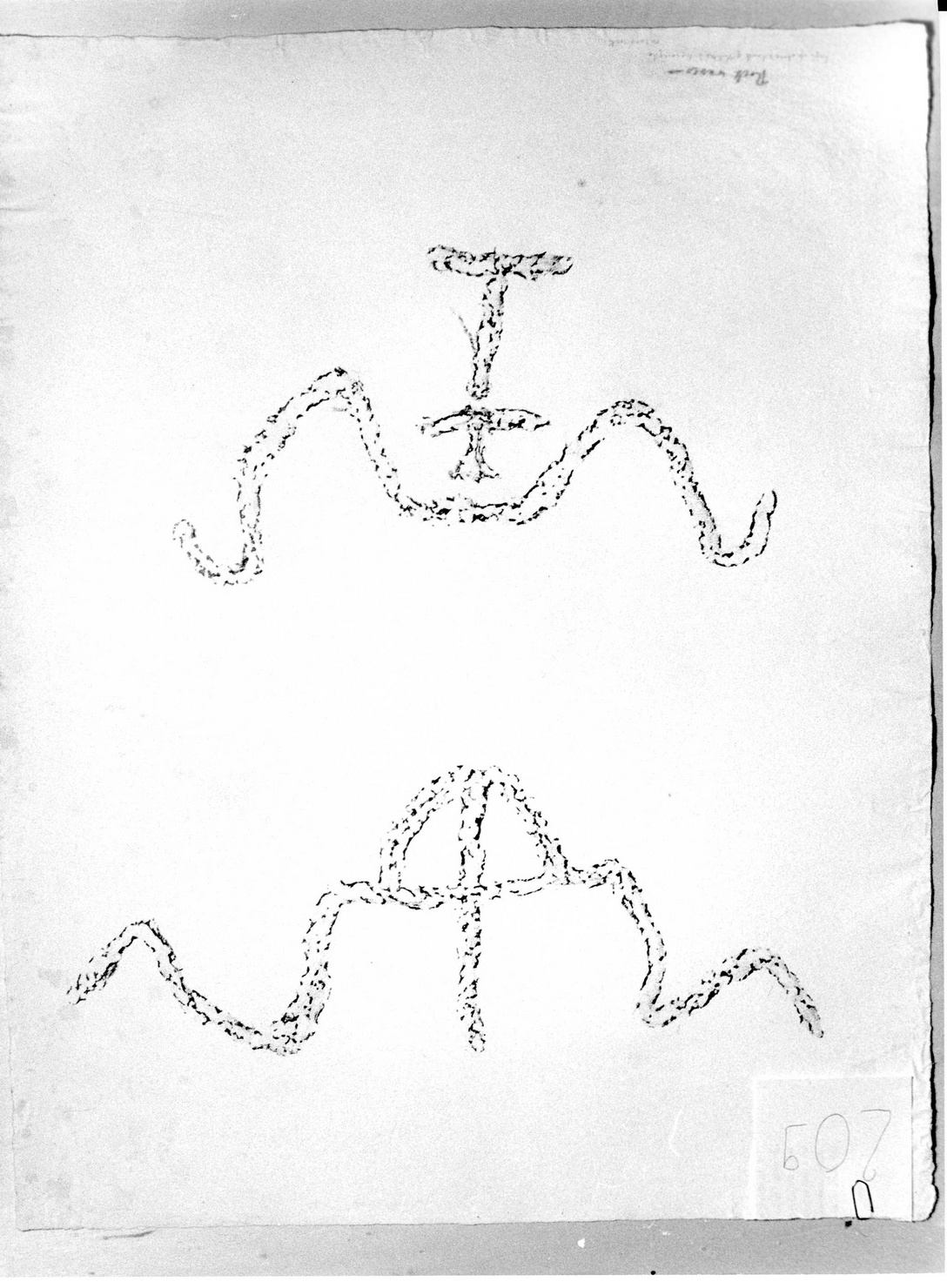 FROTTAGE SU CARTA. COPPIA DI FIGURE BOVINE SOVRAPPOSTE DALLE CORNA ONDULATE