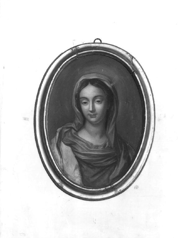 - NOTIZIE STORICO CRITICHE TELA OVALE CON CORNICE DORATA MODANATA SPACCATA IN PIU' PUNTI.IL DIPINTO PER LA RIGIDA IMPOSTAZIONE DELLA FIGURA A MEZZO BUSTO E PER LEVASTE CAMPITURE DI COLORE POVERE DI PASSAGGI GRADUALI E' ASCRIVIBILE ALL'OTTOCENTO