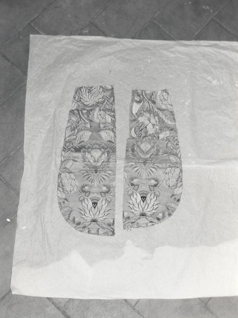 - NOTIZIE STORICO CRITICHE la forma dei frammmenti ci fa pensare a parti di pianeta con fili d'imbastiturala seconda coppia misura 114x28