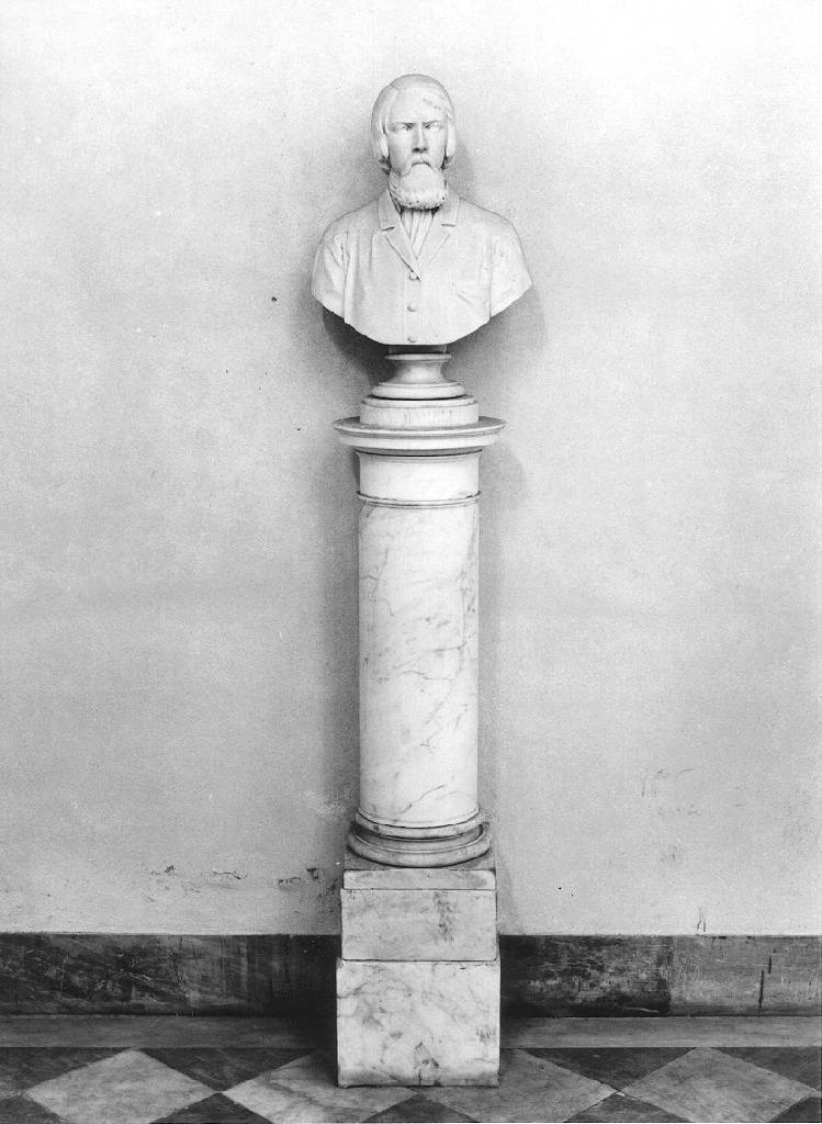 - NOTIZIE STORICO CRITICHE INSIEME ALLA LAPIDE, COLLOCATA NELL'ATRIO, IL BUSTO CELEBRA LA MEMORIA DEL MAMELI, GIA' STUDENTE DELL'ATENEO GENOVESE, RITRAENDOLO SECONDO I CANONI DELLA CORRENTE DEL REALISMO BORGHESE. OPERA BEN DEFINITA E DI DISCRETA MANO, TUTTAVIA PRESENTA UN'ESPRESSIONE RIGIDA, MANCANTE DI QUELLA VIVACITA' E PROFONDITA' CHE CARATTERIZZANO DIVERSE ALTRE SCULTURE COEVE OSPITATE NEL PALAZZO