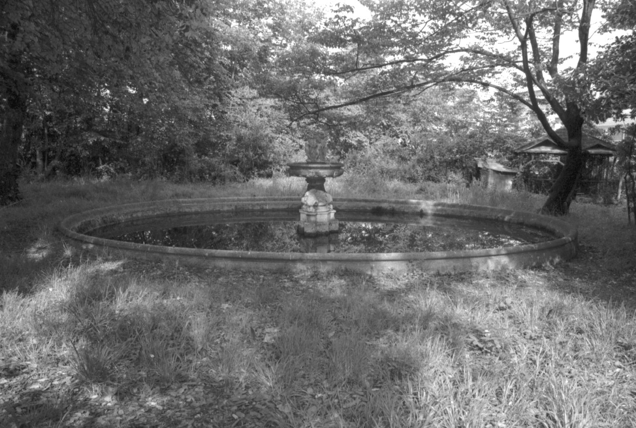 Al centro di una grande vasca circolare si trova la fontana marmorea. Sopra un piedistallo polilobato figure mostruose reggono un catino su cui vi è un cilindro dove alcuni putti si stringono tutt'intorno tenendosi per mano
