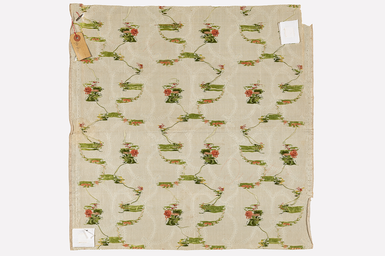 - NOTIZIE STORICO CRITICHE Per lo schema decorativo a maglie chiuse irregolari e il disegno minuto e molto raffinato il telo può essere datato negli anni 1775-80 e attribuito a una manifattura di livello assai elevato. Precedente numero di inventario mancante
