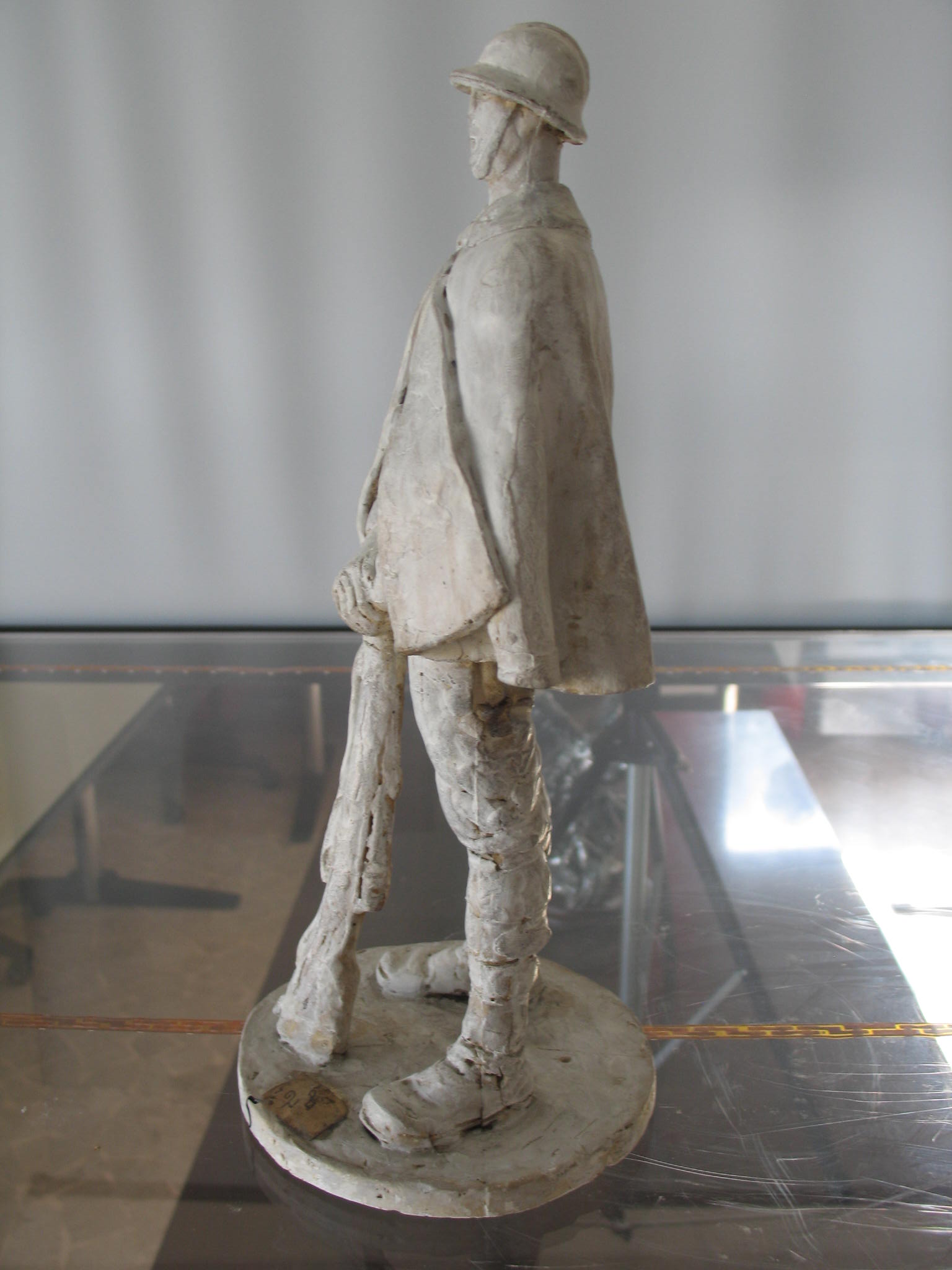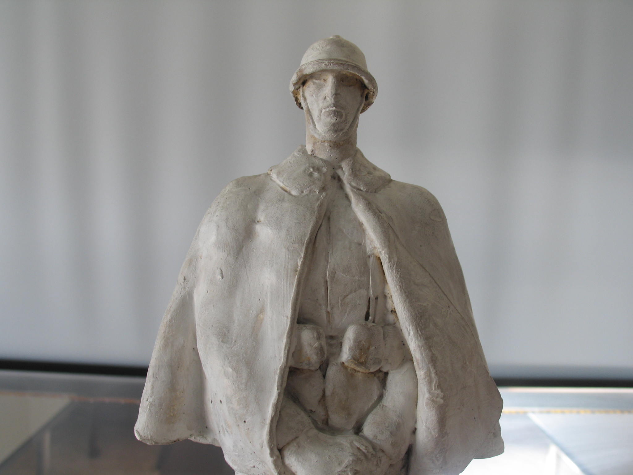 Il gruppo a cui appartiene quest’opera costituisce la prima versione delle statue destinate al Monumento che la città di Torino eresse ad Emanuele Filiberto duca d’Aosta, comandante della III Armata, vittoriosa a Vittorio Veneto. I bozzetti, eseguiti tra il 1933 ed il 1935, erano destinati ad illustrare le statue successivamente realizzate da Baroni per il Monumento al duca d’Aosta. Nel concorso Baroni risultò vincitore di fronte al secondo concorrente, Arturo Martini. Entrambi i concorrenti avevano tentato di proporre una immagine della guerra non convenzionale, già espressa da Baroni nel concorso vincitore per il non realizzato Monumento al Fante sul Monte San Michele, espressione della sua arte mai banale né retorica. Questo bozzetto spicca per solennità della figura, resa in modo completamente frontale, rigida nella sua assalità. Anche le mani, raccolta a reggere dritto il fucile, sottolineano questa idea, costituendo un po’ il fulcro di tutta la composizione. Il ritmo è molto serrato: elmo, mantello, divisa concorrono a rendere il tutto ancor più composto e ufficiale