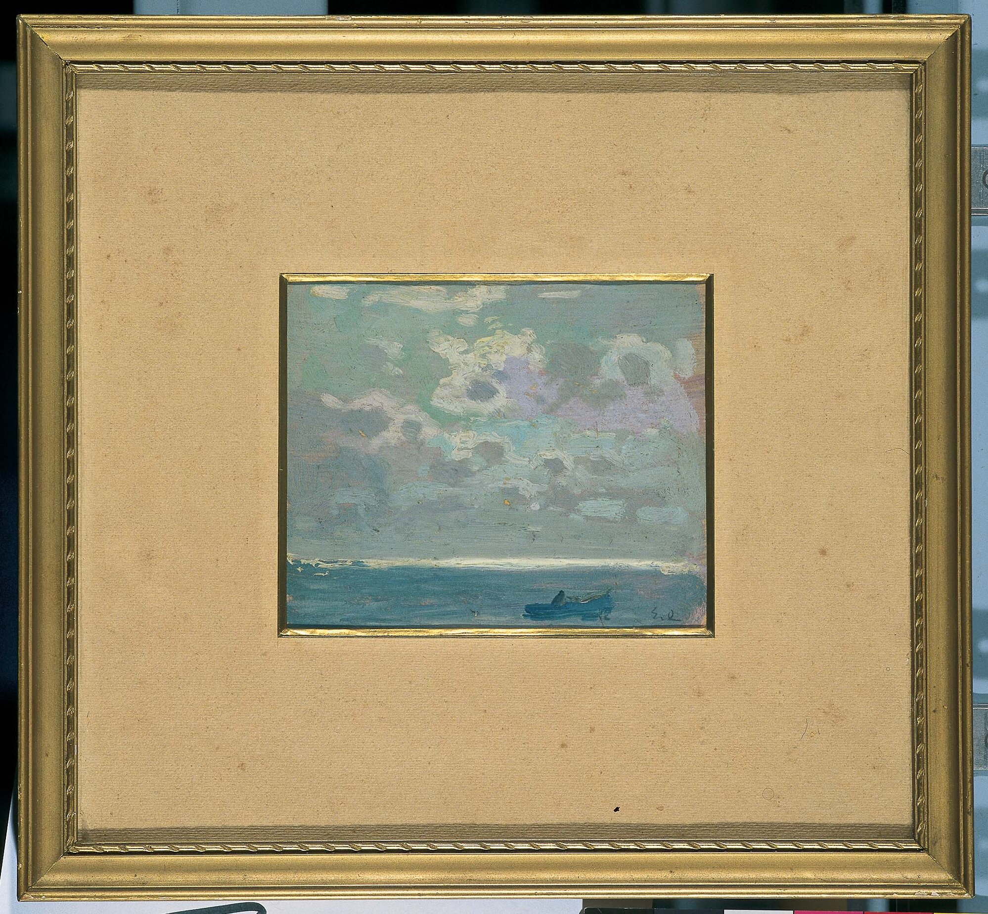 Dipinto su cartone raffigurante uno scorcio di mare aperto