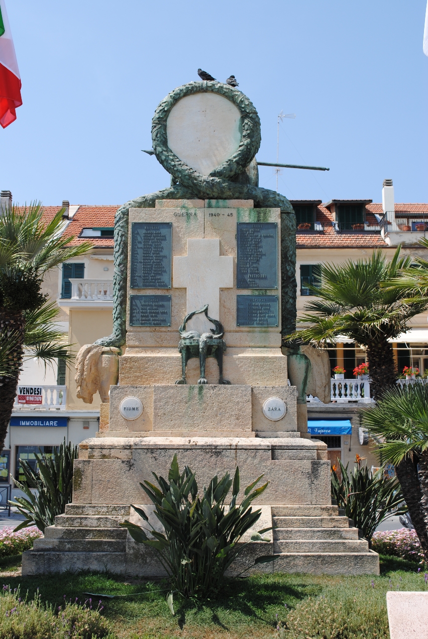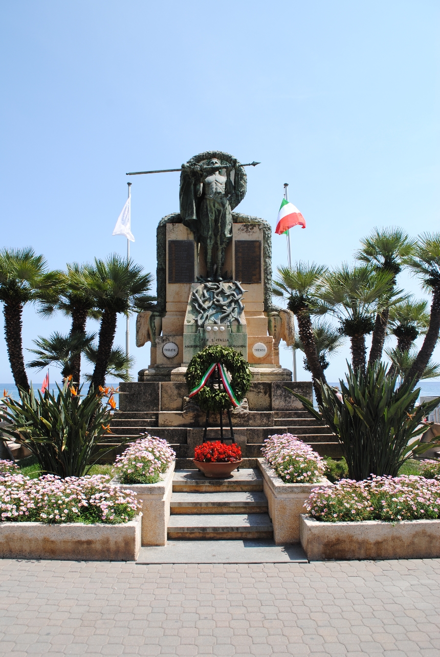 - NOTIZIE STORICO CRITICHE Il monumento, voluta dal marchese Frascaroli in onore e ricordo dei caduti pietresi della Grande Guerra, è stato realizzato dallo scultore Bartolomeo Ratto ed inaugurato il 5 luglio 1925. Fonte bibliografica: Rossini Giorgio (a cura di), “Da Baroni a Piacentini. Immagine e memoria della Grande Guerra a Genova e in Liguria”, Skira editore, Milano 2009, p. 154. Sitografia: http://www.monumentigrandeguerra.it (id immagine: 2278)