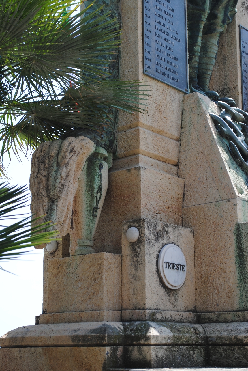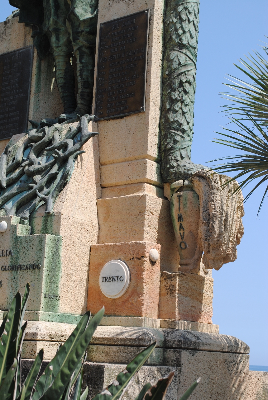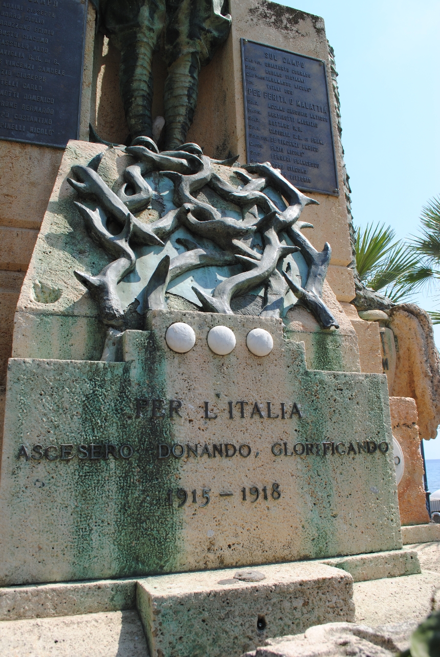 - ISCRIZIONI piedistallo/ fronte - PER L’ITALIA / ASCESERO DONANDO, GLORIFICANDO / 1915 – 1918 - a caratteri applicati -