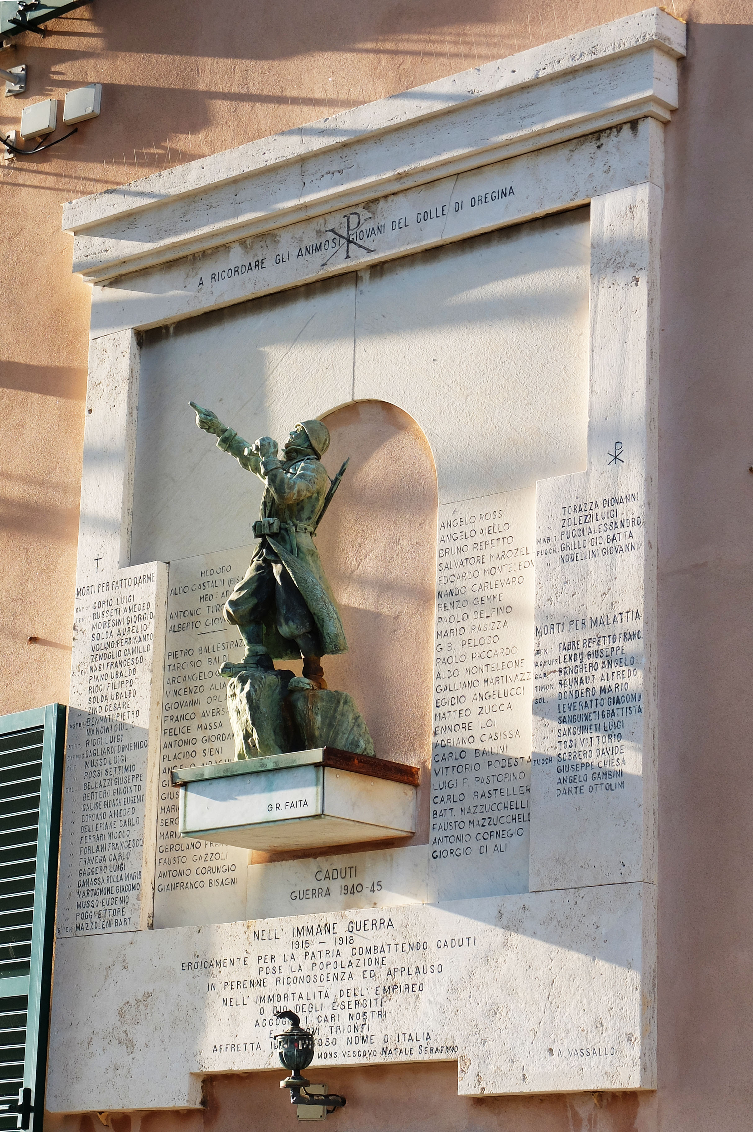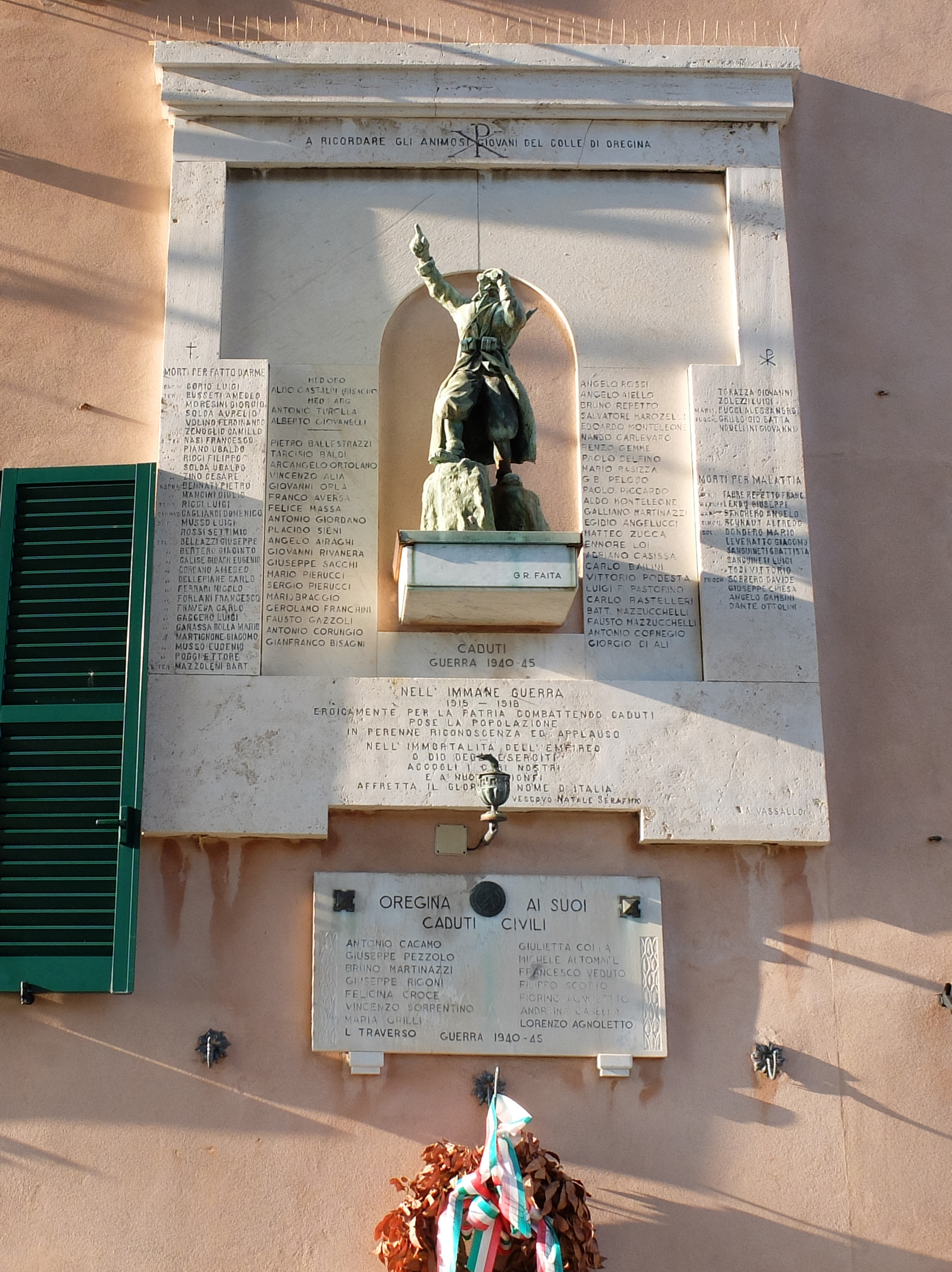 - ISCRIZIONI in alto al centro - A RICORDARE GLI ANIMOSI GIOVANI DEL COLLE DI OREGINA - maiuscolo -