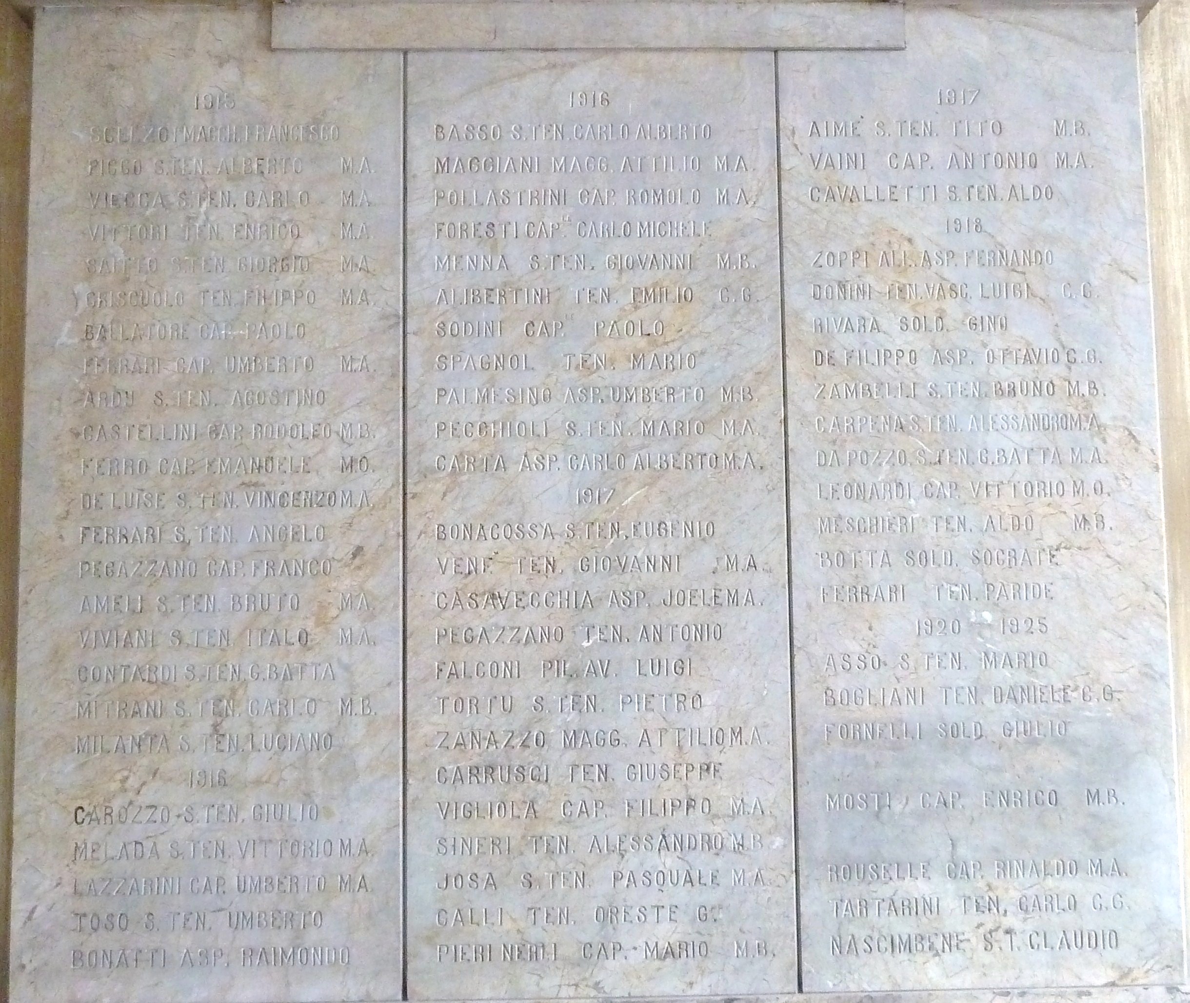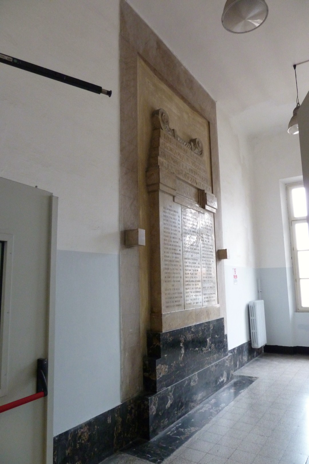 - NOTIZIE STORICO CRITICHE Il Palazzo degli Studi, progettato dall'architetto Armando Titta, e edificato tra il 1921, e il 1923, è storica sede di alcuni istituti di istruzione superiore cittadina. La lapide riporta i nomi dei caduti fino al 1925. Tra i nomi dei caduti spicca quello di Picco Alberto, fondatore dello Spezia Calcio, ex studente di ragioneria all'Istituto da Passano , che ebbe poi sede nel Palazzo degli Studi. Sebbene non sia specificato è probabile che la lapide sia dedicata agli ex alunni dei vari istituti scolastici che vennero poi ad avere sede nel Palzzo