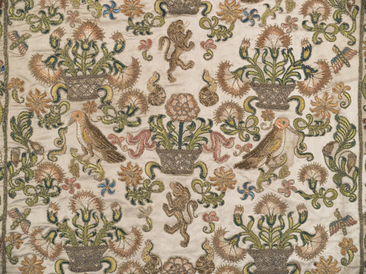 - NOTIZIE STORICO CRITICHE L'elaborato ricamo del velo omerale, riportato su un supporto in raso di sostituzione, si contraddistingue per la ricchezza dei particolari, la vivacità cromatica e per l'abbinamento dei soggetti floreali e animali, elementi che rimandano alle tendenze stilistiche dei tessuti e die ricami diffusi tra la fine del XVI e la prima metà del XVII secolo (cfr. M. Carmignani, Tessuti, ricami e merletti in Italia dal Rinascimento al Liberty, pp. 177-178). Il velo, proveniente dalla collezione privata Gardella, è munito di sigillo circolare in piombo dell'Ufficio esportazione oggetti d'antichità e arte di Roma