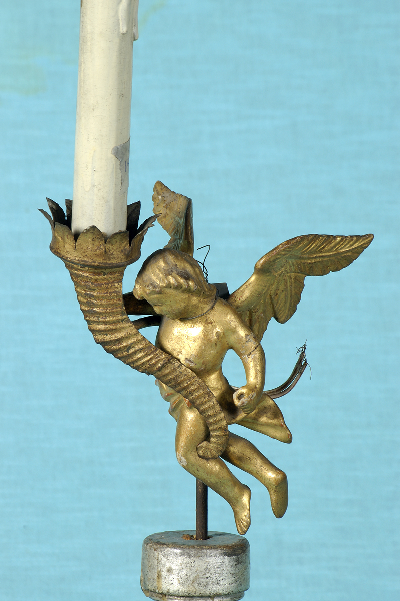 Ogni angioletto regge una cornucopia con portacandela. Sono stati adattati all'elettricità