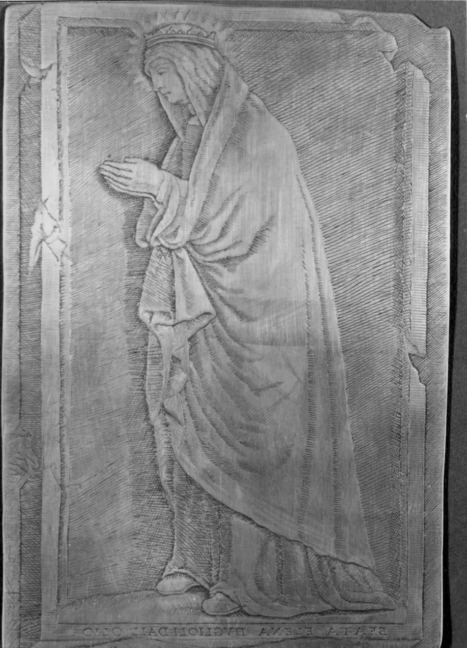 - ISCRIZIONI a sinistra - FRANC. O SPAGNOLI FIN. E ANTICO RITRATTO DELLA BEATA ELENA DALL'OLIO NELLA BIBLIOTECA DELL'ISTITUTO DI BOLOGNA - lettere capitali -
