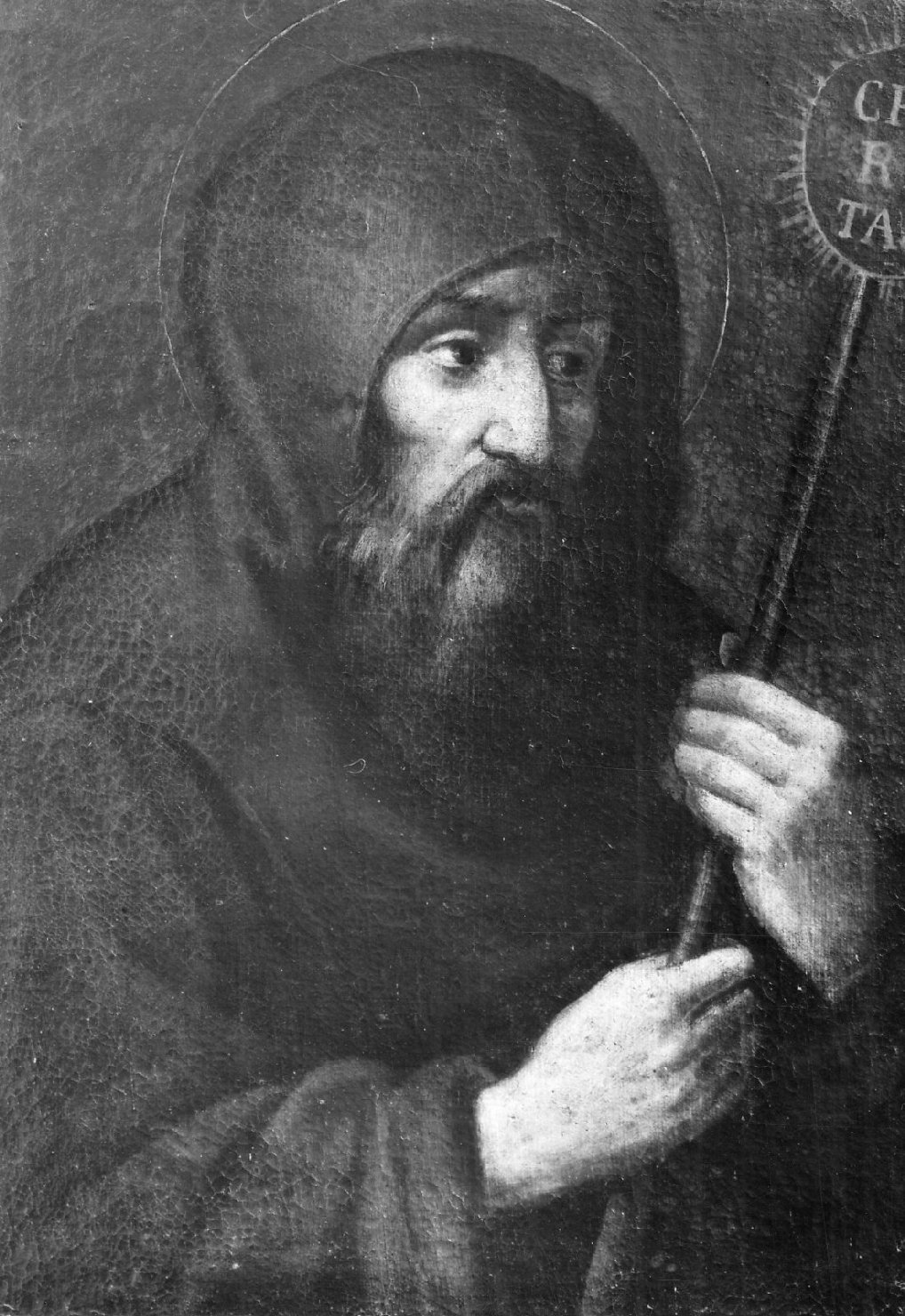 Raffigurato a mezzo busto, il santo porta il saio col cappuccio che gli copre completamente la testa e tiene in mano il bastone alla cui estremità si irradia la consueta scritta "CHARITAS"; il dipinto è completo di cornice lignea intagliata