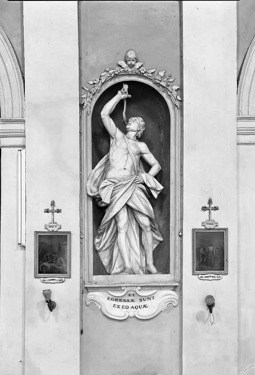 - NOTIZIE STORICO CRITICHE Si tratta probabilmente delle opere più antiche eseguite a Rimini dal Sarti, e sono databili verso il 1750. Derivano in paret da prototipi pittorici del secolo precedente, e precisamente reniani (in questo senso sono da considerare riproduzione vere e proprie il Sansone e il Mosè), interpretati liberamente