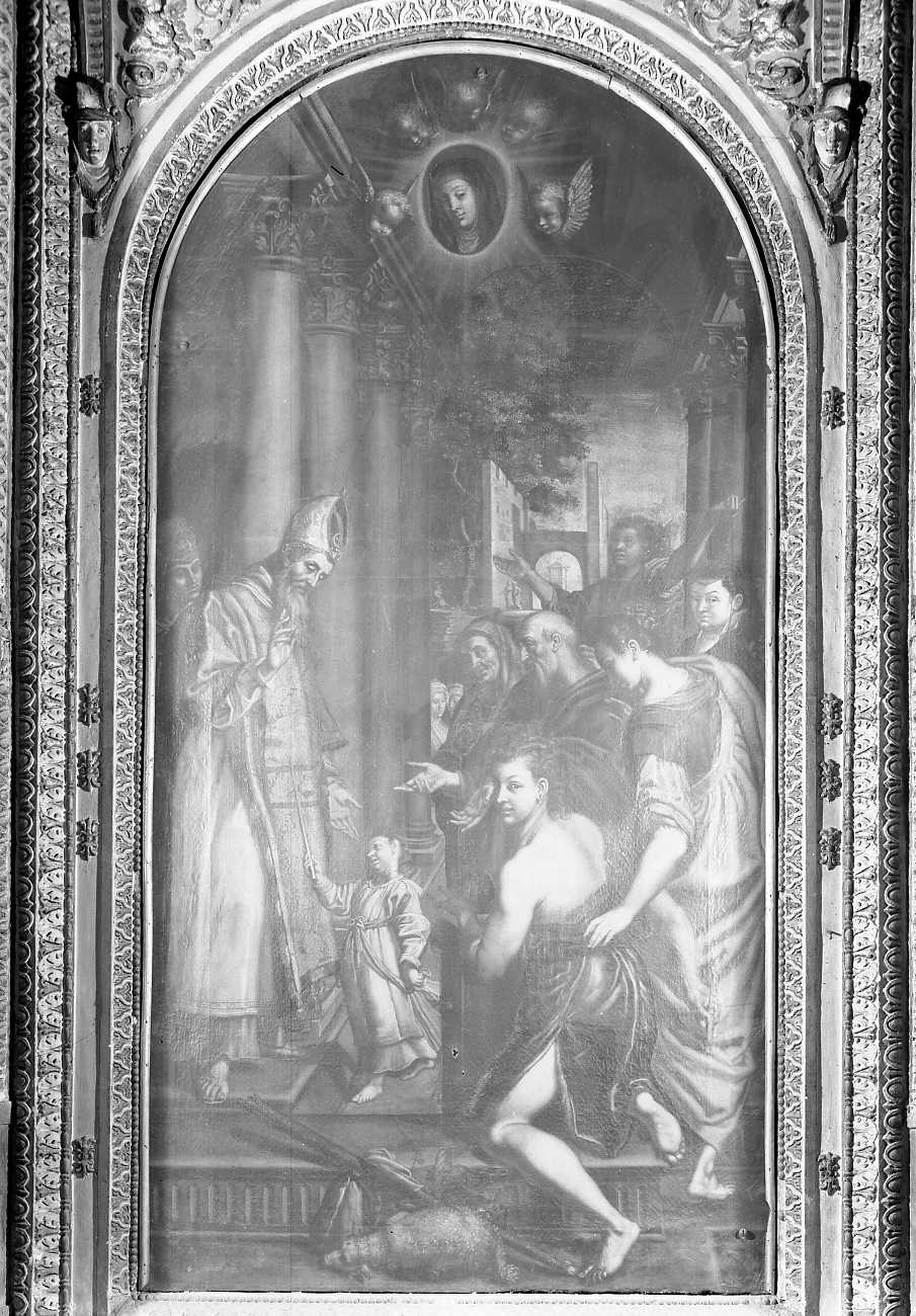 - NOTIZIE STORICO CRITICHE All'epoca del rilevamento inventariale del 1932 era ancora visibile nella parte superiore del dipinto la Madonna addolorata in una mandorla di luce, coronata da cinque testine di cherubino. La tela servì nel 1594 a coprire una antica immagine della cappella