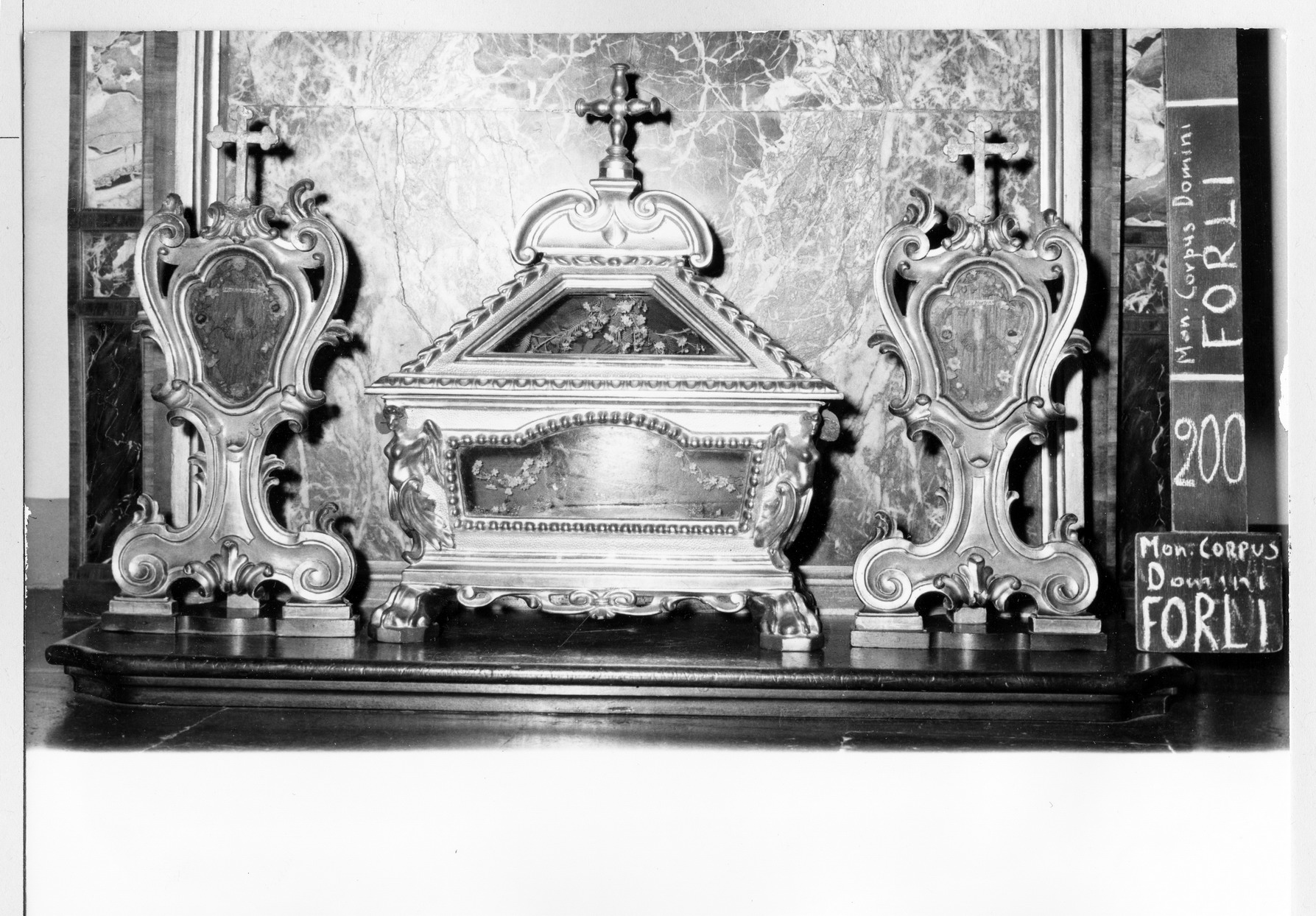 - NOTIZIE STORICO CRITICHE Gli ostensori hanno una fattura piuttosto comune nel contesto di questo genere di manufatti. Per ragioni di stile i più antichi appaiono quelli a ostensorio, legati al gusto rococò. La gestazione dei tre oggetti si pone probabilmente tra il terzo e l'ultimo quarto del Settecento, ad opera di una bottega locale. A tale proposito una Visita Pastorale del 1767 segnala la presenza di "Sacre reliquie" nel monastero (Zaghini, 1989) e poco dopo tale patrimonio sarebbe stato notevolmente accresciuto dal fervore di padre Andrea Michelini