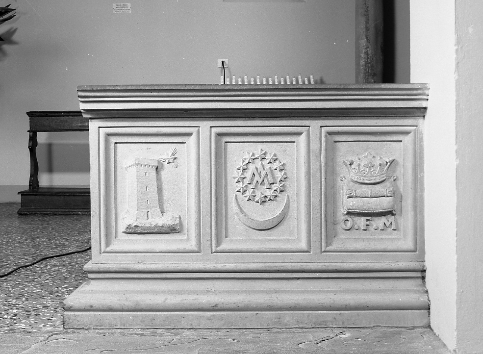 serie di plutei o cancellate delle cappelle laterali ora scomparse coi restauri della chiesa scolpiti a trofei, vasi, corone di alloro, stemmi dell'ordine francescano e simboli religiosi
