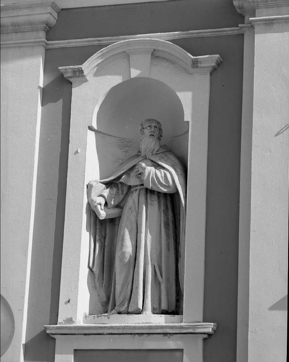 - NOTIZIE STORICO CRITICHE Per le vicende relative alla commissione ed esecuzione delle statue vedi lo schema precedente. Rispetto al beato Niccolò,il beato pietro da Pisa si mostr aancora più rozzo: per le gravi pieghe della veste di rigida pesantezza, per la caricata enfasi del viso per l'assoluta mancanza di movimento. Già le grandi figure dellafacciata di S. Bernardino a Rimini, del 1765, erano così sommariamente modellate e costrette nelle nicchie che sembravano troppo strette: vi è perduto, in quello come in questo caso, il sottile senso delle proporzioni, la capacità decorativa, i gesti misurati nello spazio proprio dello stile del Sarti