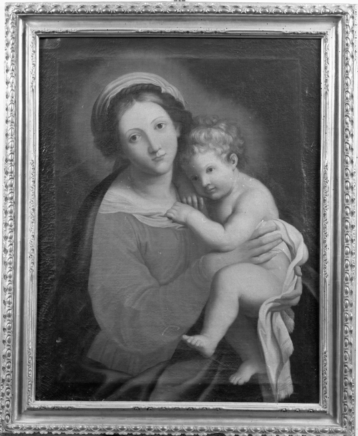 - NOTIZIE STORICO CRITICHE E' copia da un celebre modello particolarmente apprezzato verso la metà del Seicento in quell'area di classicismi neo-raffaellesco che ha il suo centro a Roma e si allarga all'italia centrale grazie all'attività di alcuni artisti, in primo luogo Giovan Battista Salvi detto il Sassoferrato (a lui sono riferite alcune repliche di questo modello), ma anche G.D. Cerrini e, su un versante più naturalistico, Francesco Cozza. Tuttavia questo fortunato prototipo risale a Pierre Mignard, del cui lungo soggiorno in Italia (1635-1656) ricordato dalle fonti, ben poco è ora noto. Dal dipinto eseguito a Roma del Mignard Francois de Pailly trasse un'incisione (su questo fenomeno della cultura classicista nella Roma barocca cfr. S.C. Boyer - F. Macé de Lépinay, The 'Mignardes', Sassoferrato and Roman classicism during the 1650s, in 'The Burlington Magazine', vol. CXXIII, n. 935, feb. 1981, pp. 69-74). Il dipinto in questione è stato attribuito da Malaguzzi Valeri al Sassoferrato. In realtà non possiede la veste cromatica smaltata delle opere di quest'artista, pur partecipando del programmatico purismo della sua pittura. In tempi recenti (cfr. Bibl. 1981) è stato citato come di sconosciuta ubicazione