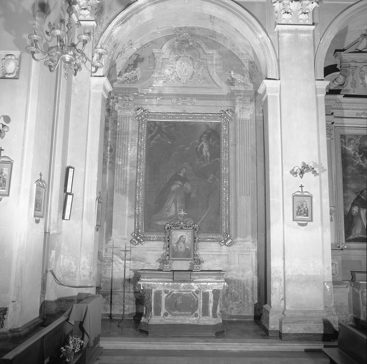 La pala raffigura san Giacinto in ginocchio, visto di profilo che, con le braccia incrociate al petto, volge lo sguardo estatico alla Madonna con Bambino in alto su una nuvola. A sinistra un angelo indica una lapide trapassata da un raggio di luce