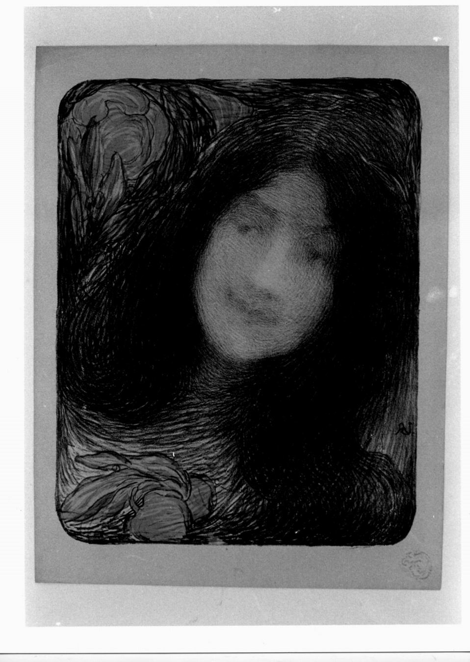 Figure femminili: volto femminile. Fiori
