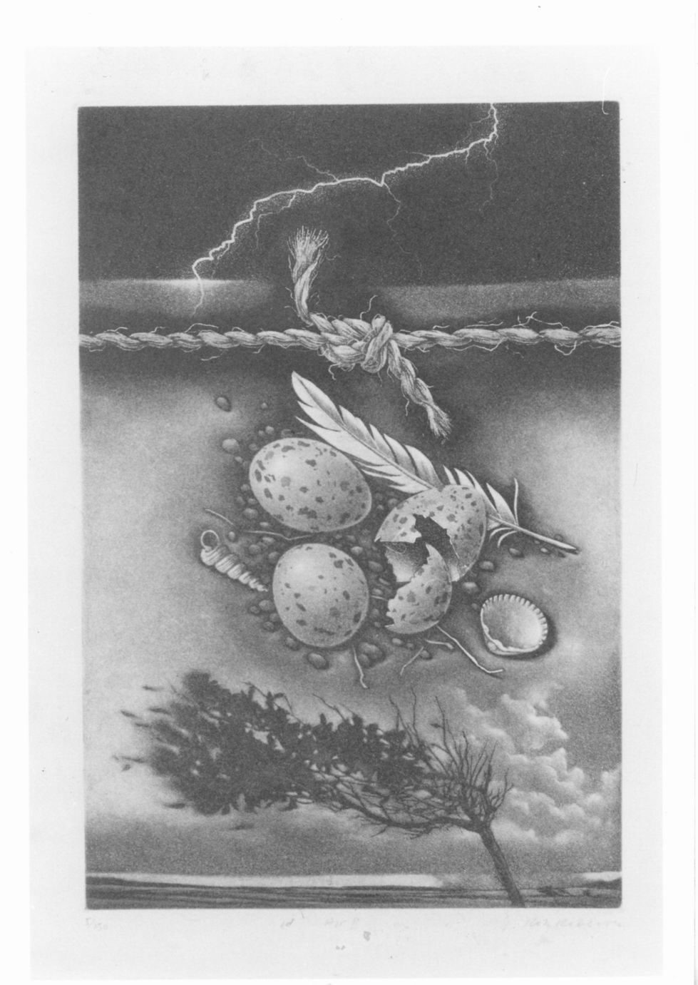 Air II. Composizione con uova, conchiglia, piuma, corda ed albero